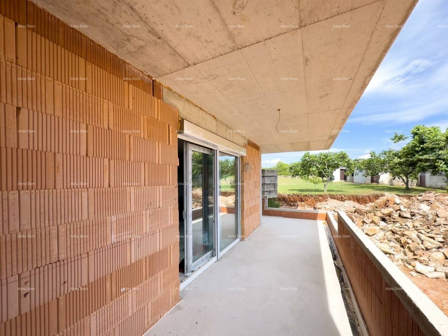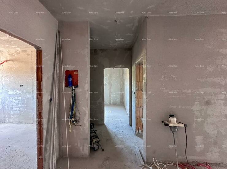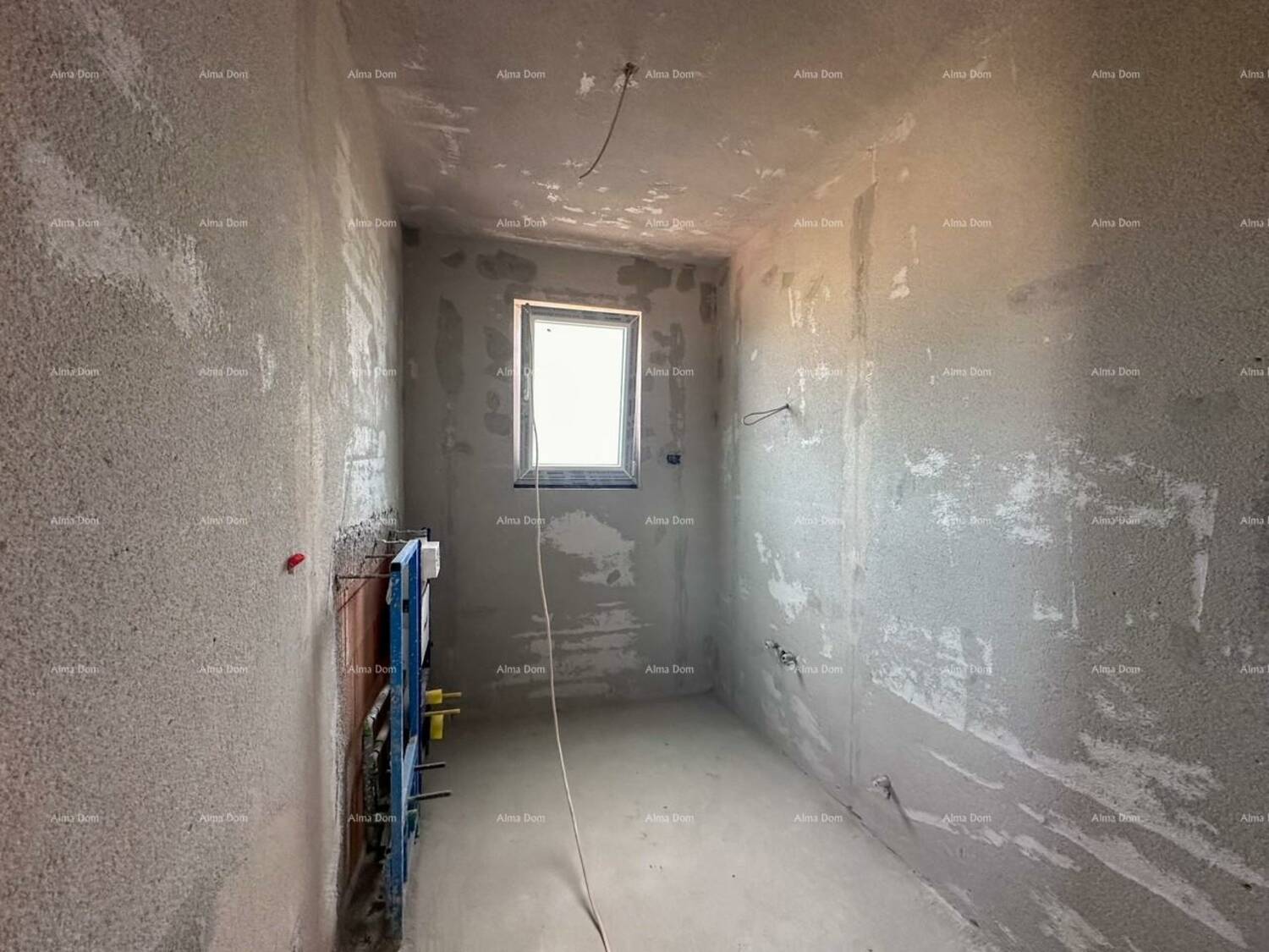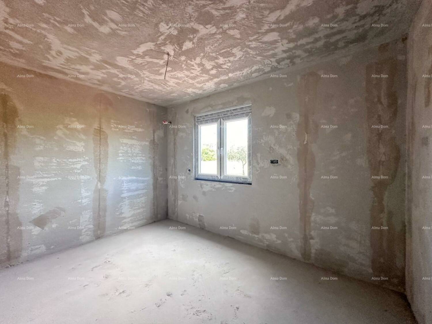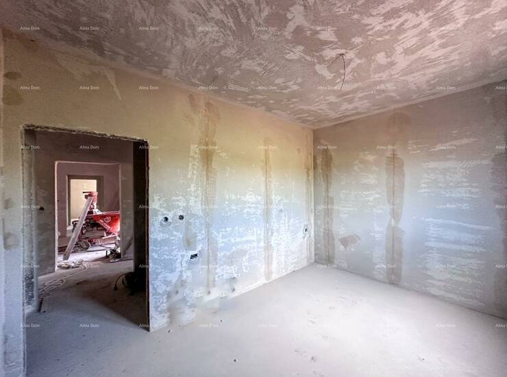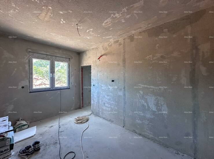 Stan se sastoji od dvije spavaće sobe od čega jedna ima vlastito kupatilo, ostave, još jednog kupatila, kuhinje, blagovaonice i dnevnog boravka iz kog se izlazi na veliku natkrivenu terasu (20m2).