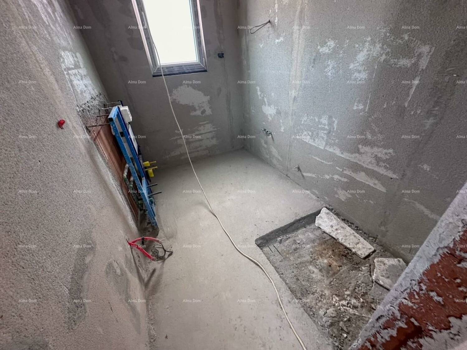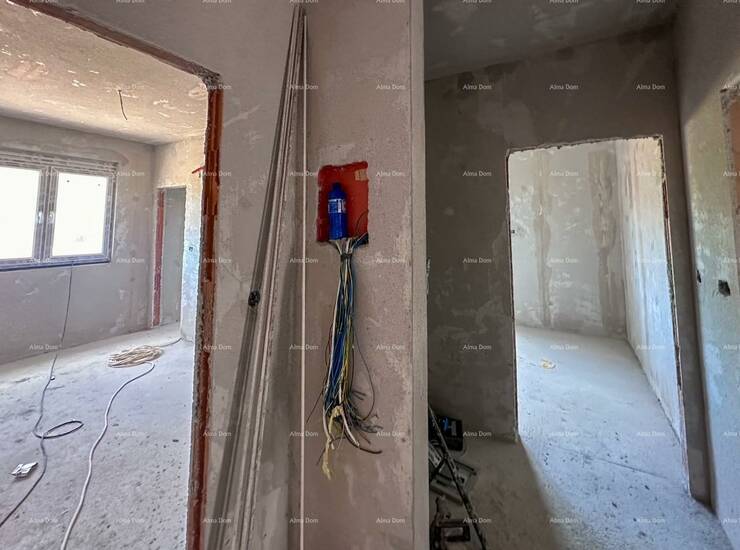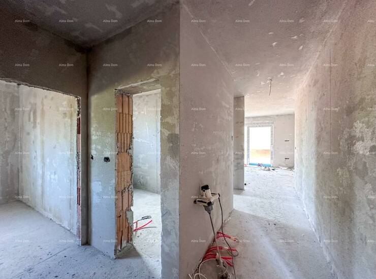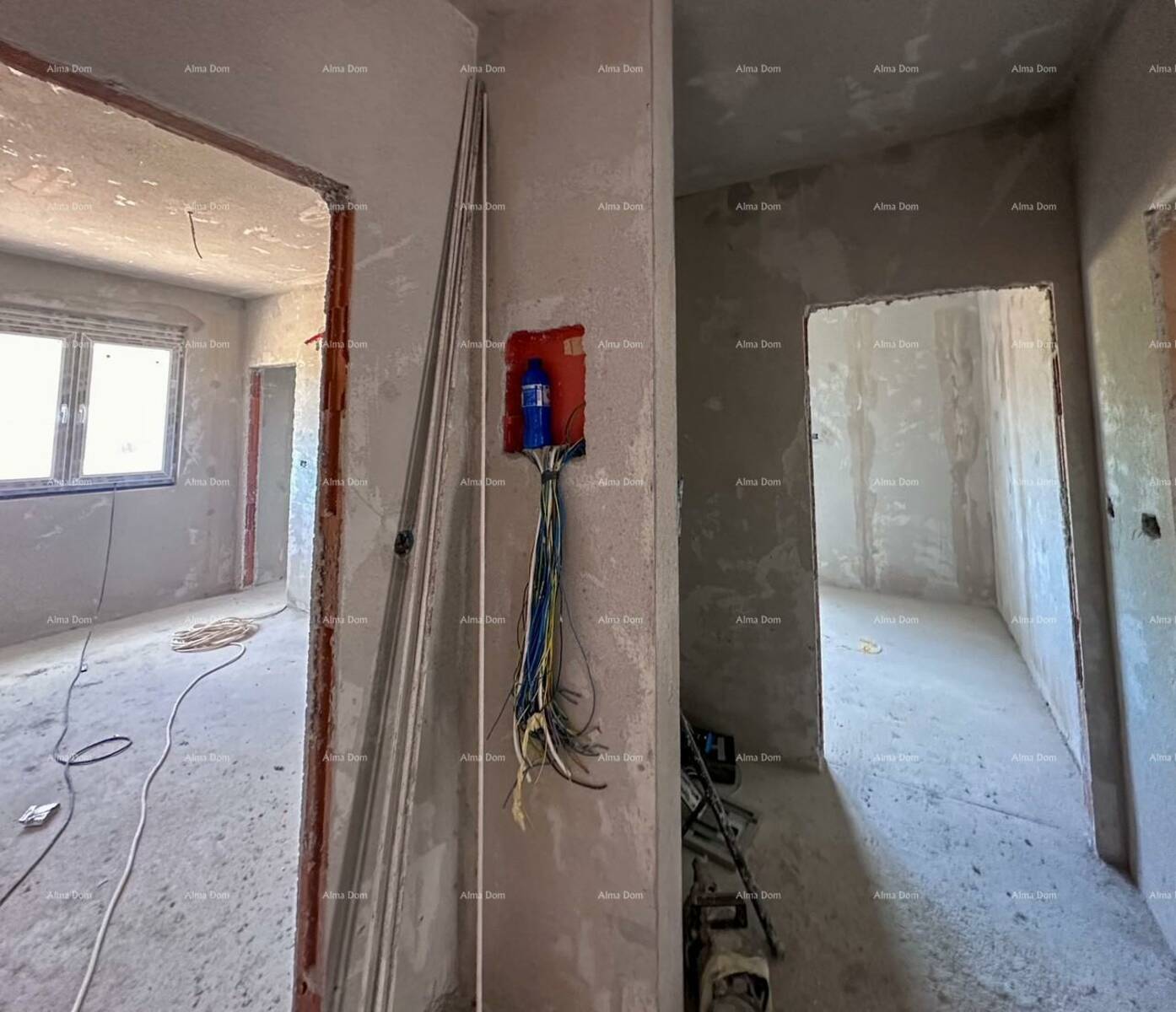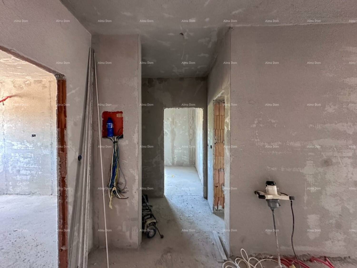 Stan se sastoji od dvije spavaće sobe od čega jedna ima vlastito kupatilo, ostave, još jednog kupatila, kuhinje, blagovaonice i dnevnog boravka iz kog se izlazi na veliku natkrivenu terasu (20m2).