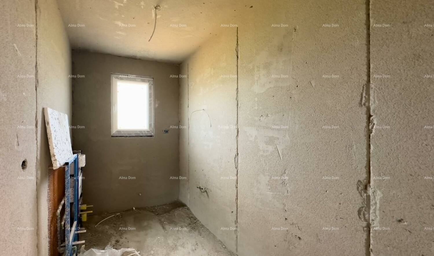 Stan se sastoji od dvije spavaće sobe od čega jedna ima vlastito kupatilo, ostave, još jednog kupatila, kuhinje, blagovaonice i dnevnog boravka iz kog se izlazi na veliku natkrivenu terasu (20m2).