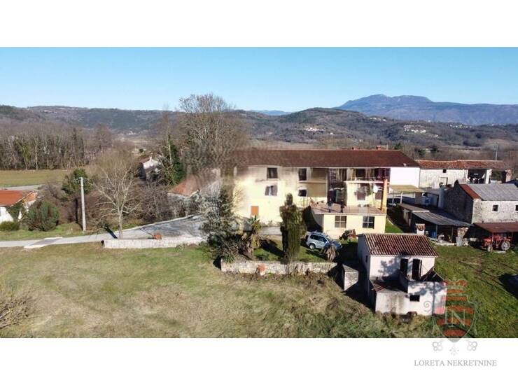 Na prodaju je velika kamena kuća, savršena za obiteljsko gospodarstvo, koja se sastoji od useljivog kata i prostranog prizemlja, uz koju se nalazi garaža, gospodarski objekt i građevinsko zemljište.