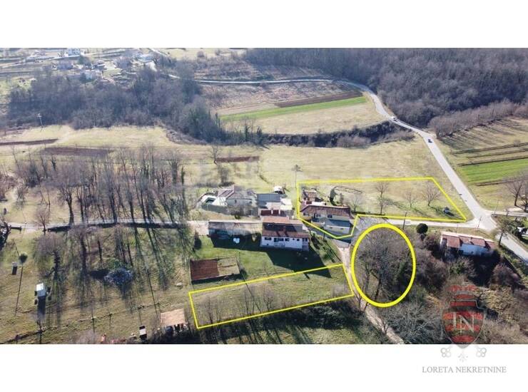 Okućnica i zemljište: okućnicu čini građevinsko zemljište površine 1.694 m² uz kuću te građevinska parcela površine 700 m² iza kuće. Uz to, postoji mogućnost kupnje poljoprivrednog zemljišta u blizini.
