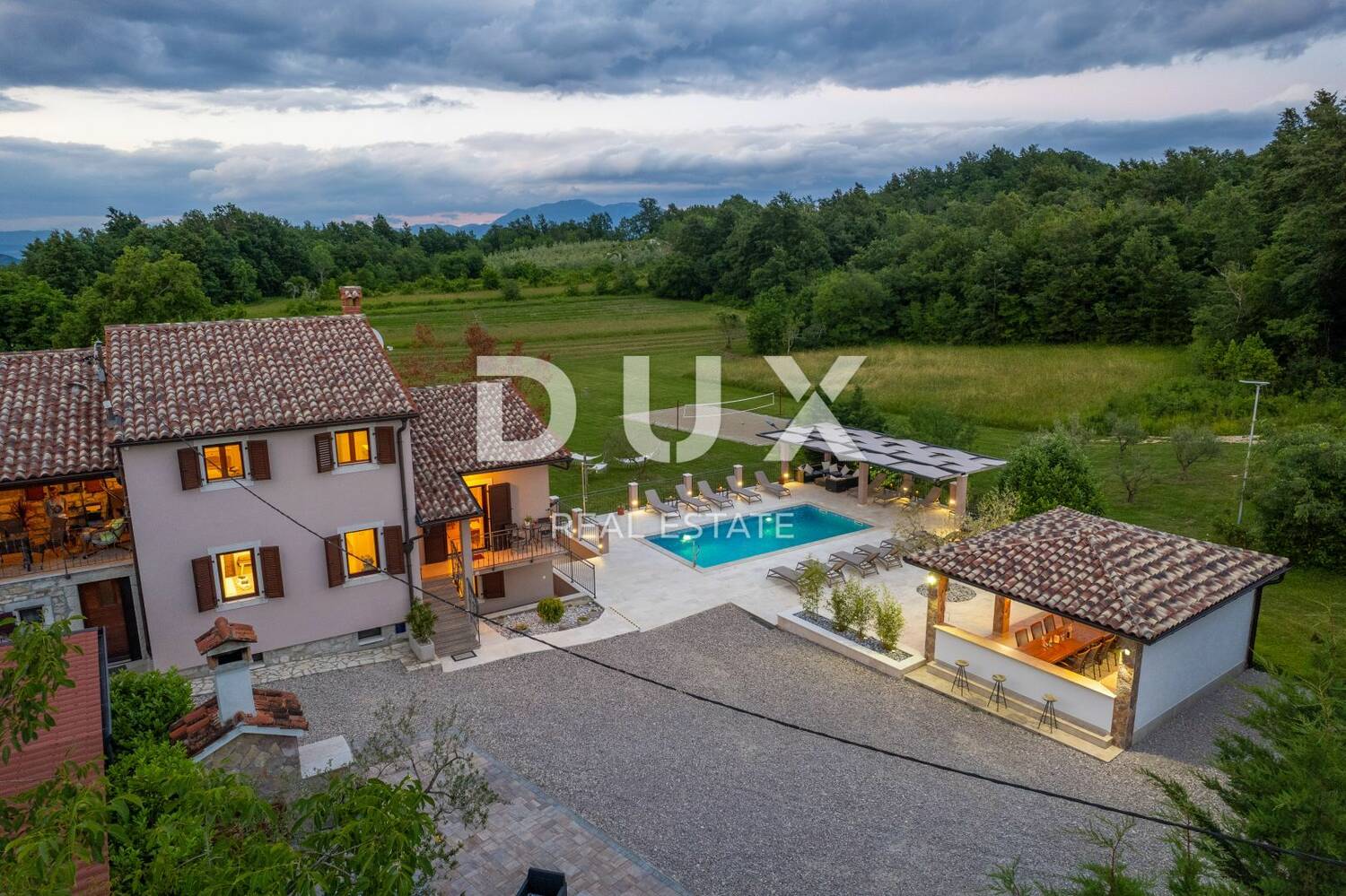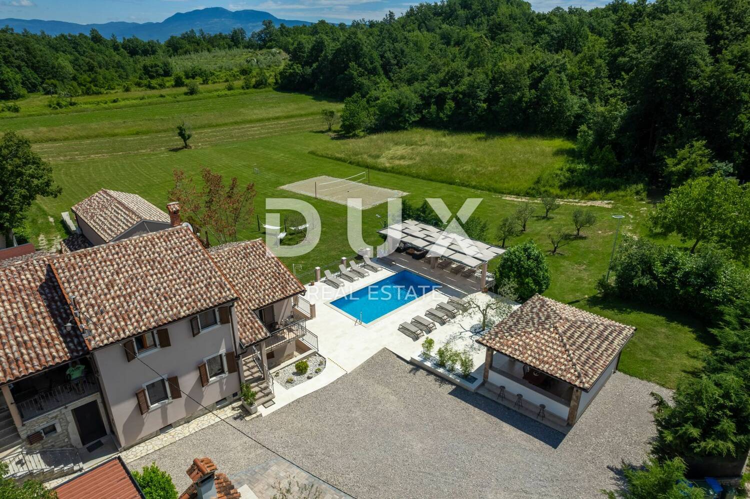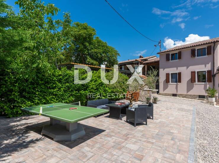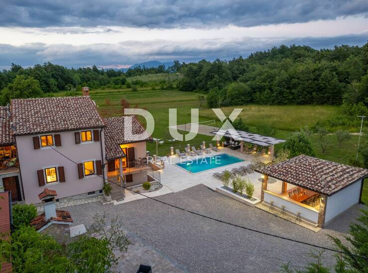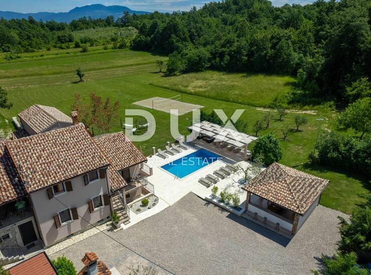 Smješteno na manjemu brežuljku u neposrednoj blizini jednog od poznatih Istarskih pitoresknih kamenih naselja, riječ je o šarmantnom naselju Pićan. Ovo toplo i uređeno imanje smješteno je na prostranoj parceli od čak 4.500m2 s privatnim većim bazenom i mnogobrojnim aktivnostima na otvorenom zraku od kojih je jedno i profesionalan teniski teren,