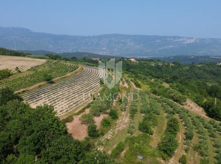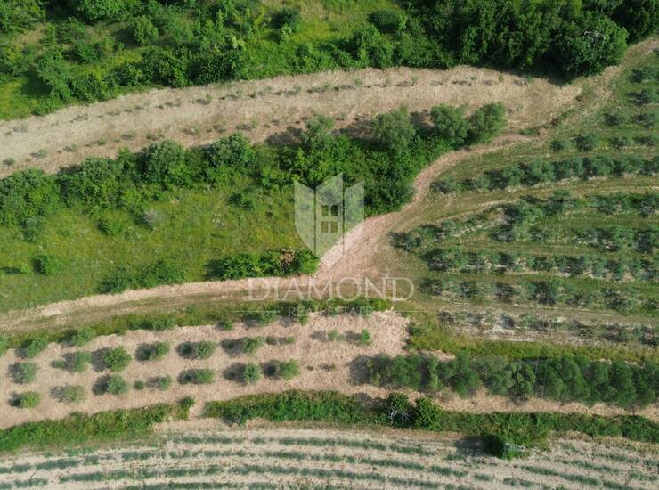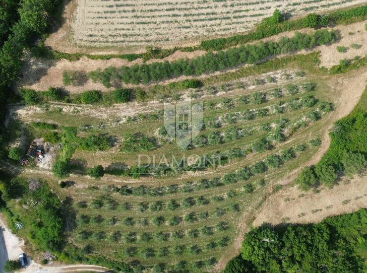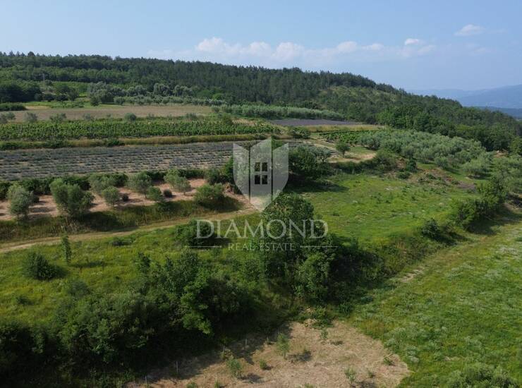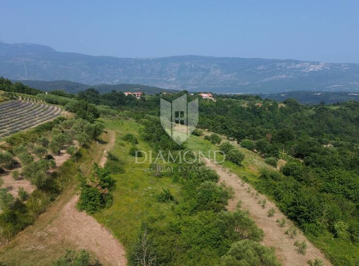 Istočna Istra, prodajemo kompleks građevinskoga i poljoprivrednoga zemljišta sa maslinikom i prekrasnim pogledom na okolne brežuljke.