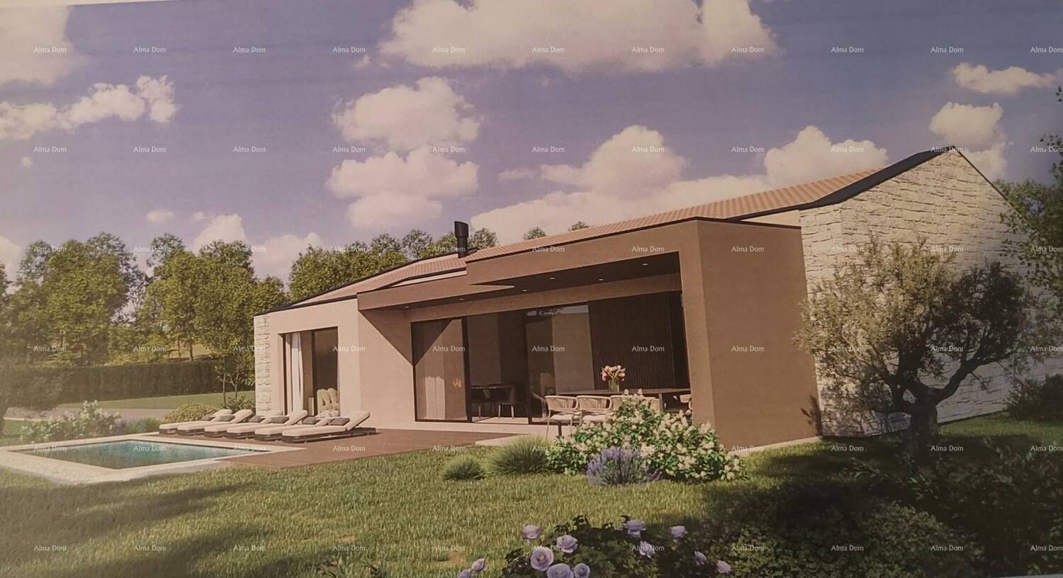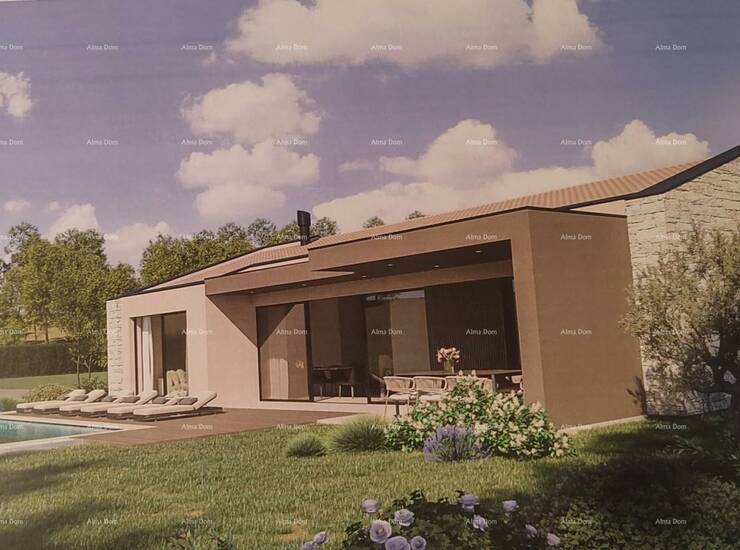 Parcela površine 1818 m² dolazi s gotovim idejnim projektom koji predviđa modernu kuću neto površine 107 m², odnosno 134 m² s terasama, te bazen od 24 m². Teren je ravan, uredan i spreman za gradnju, s pristupom asfaltiranim putem, dok se priključci struje, vode i kanalizacije nalaze u neposrednoj blizini.