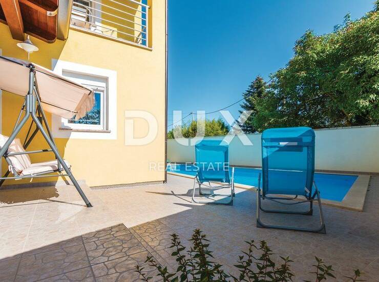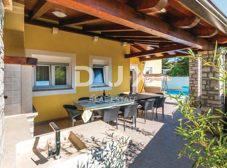 Na lijepo uređenoj okućnici nalazi se bazen površine 24 m2 i natkrivena terasa s roštiljem.