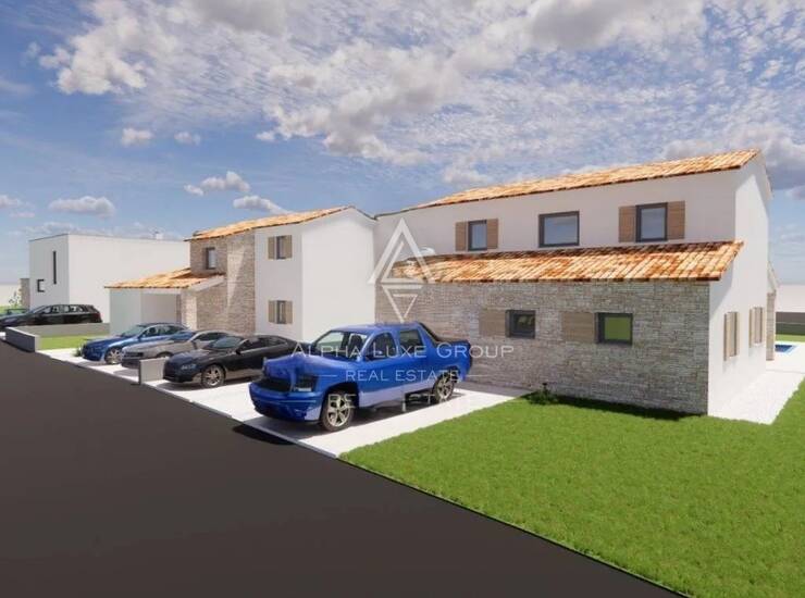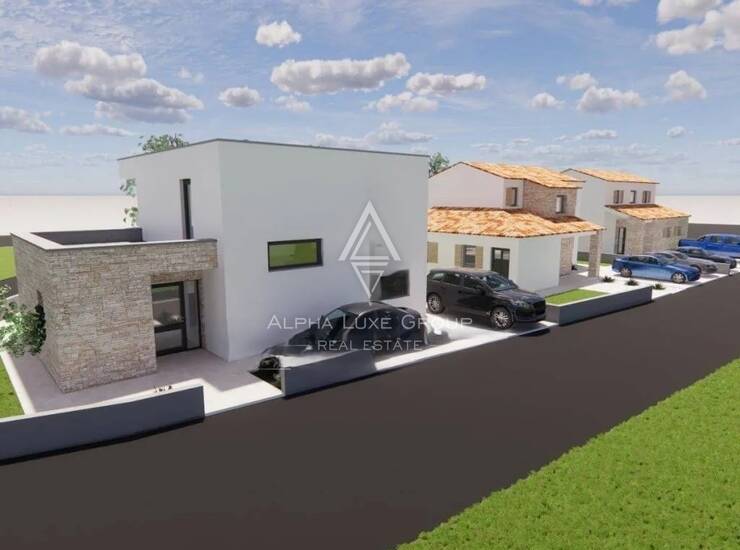 Ova moderna dvokatnica u izgradnji nalazi se na parceli od 553 m2, s ukupnom stambenom površinom od 156 m2. Prizemlje se ponosi otvorenim rasporedom koji uključuje prostrani dnevni boravak, blagovaonicu i kuhinju, sve s prirodnim svjetlom kroz velike staklene stijene. Ova razina također uključuje jednu spavaću sobu s kupaonicom i zasebnim WC-om. Klizna vrata vode na natkrivenu terasu opremljenu ljetnom kuhinjom, savršenom za vanjsko blagovanje i zabavu. Unutarnje stubište vodi na drugi kat, koji ima dvije velike spavaće sobe, svaka s privatnom kupaonicom, i jedna s pristupom gornjoj terasi.
