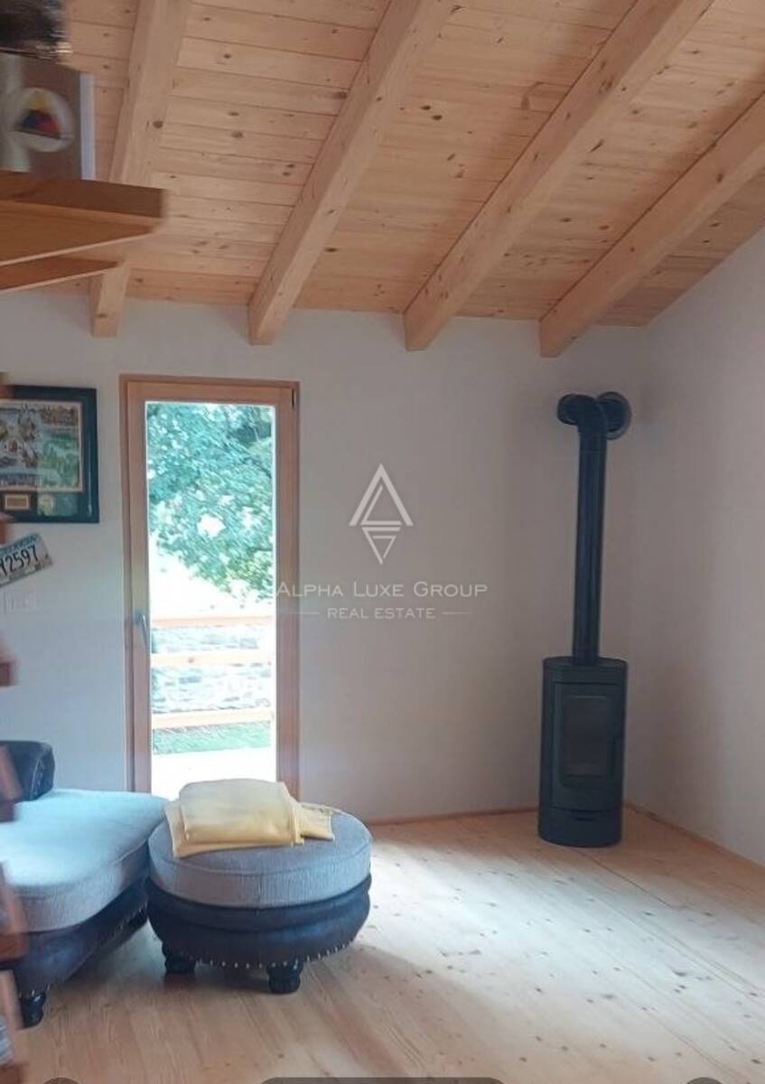Izgrađena 2024. godine od strane iskusnog njemačkog majstora, kuća se ističe korištenjem prirodnih materijala i pažnjom prema detaljima. Unutrašnjost nudi približno 66 m² stambenog prostora, odnosno oko 100 m² s terasama, osmišljena kroz svijetli open space koncept. Raspored uključuje ulazni prostor, prostrani dnevni boravak povezan s kuhinjom i blagovaonicom, dvije višenamjenske prostorije pogodne kao spavaće sobe ili ured te modernu kupaonicu s velikom kutnom kadom. Velike staklene površine osiguravaju obilje prirodnog svjetla i izlaz na prostranu terasu, dok peć na drva i klima uređaj pružaju udobnost tijekom cijele godine.