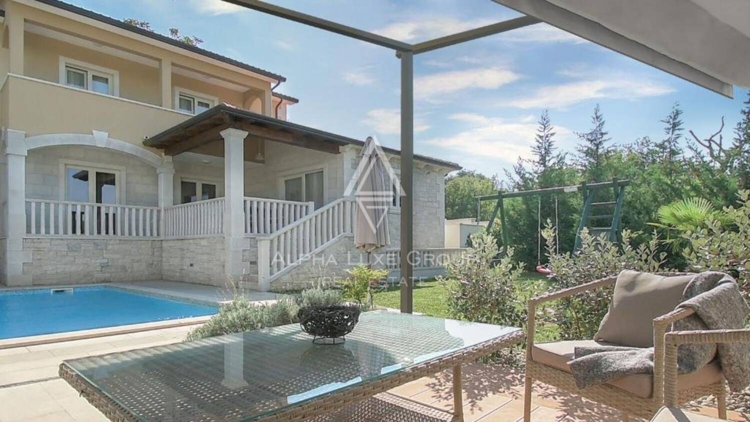 Vila se prostire na 230 m² i elegantno kombinira udobnost i funkcionalnost. Prvi kat sadrži četiri spavaće sobe, od kojih jedna ima vlastitu kupaonicu i privatni balkon, dok ostale tri imaju vlastite kupaonice s tušem. Na prizemlju se nalaze prostrani dnevni boravak, blagovaonica, moderna kuhinja, kupaonica i spremište. Vanjski prostor uključuje bazen i pažljivo uređenu zonu za opuštanje.