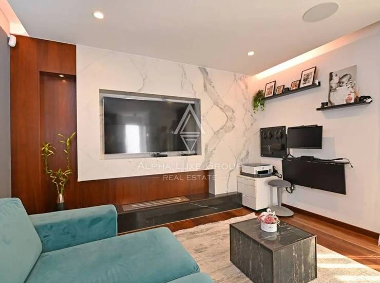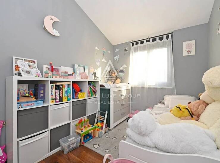 Raspored prostora je funkcionalan i prozračan. Prizemlje obuhvaća otvoreni dnevni boravak povezan s kuhinjom i hodnikom, s izravnim izlazom na prostranu terasu koja je idealna za svakodnevno korištenje i druženja. Na katu se nalaze dvije spavaće sobe i kupaonica. Posebno vrijedan detalj je nekadašnji balkon glavne spavaće sobe, koji je prenamijenjen u walk-in garderobu zatvorenu aluminijskim okvirima i staklenim stijenkama, čime je postignuta dodatna funkcionalnost uz moderan i elegantan izgled.