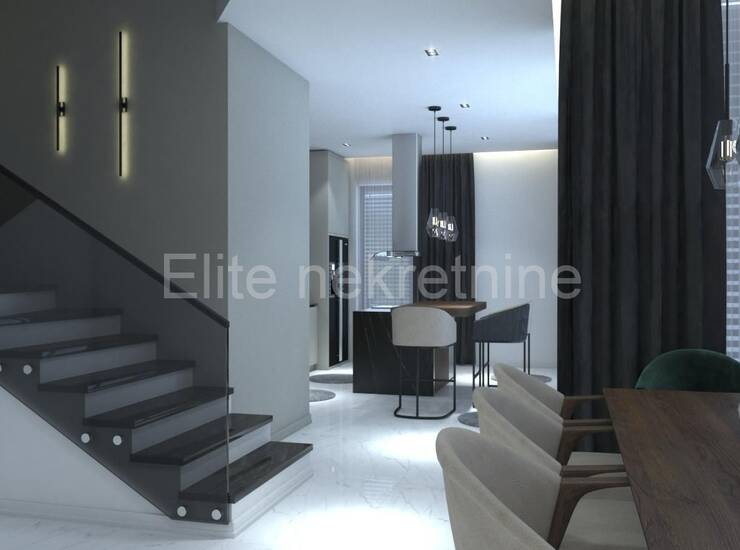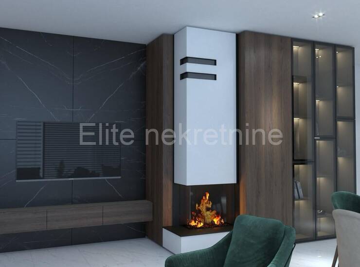 Villa pruža pogled na more, od kojeg je udaljena svega 800 m.Prilikom izgradnje pazilo se na svaki detalj od najkvalitetnijih sanitarija, podnih i zidnih obloga u interijeru kao i u exterijeru.