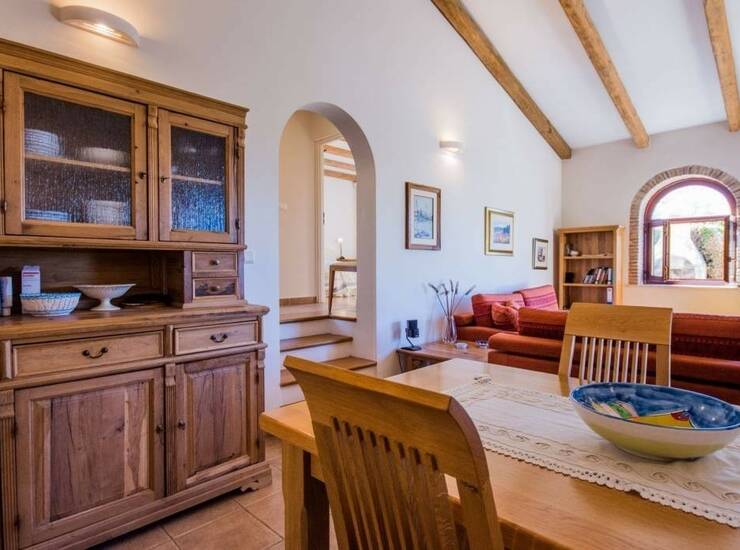 Cca 10km od Poreča i mora, smjestila se ova prizemna kuća, dvojnica, s prekrasnim pogledom na more. Idealna je za miran obiteljski život, odmor ili kao investicija za turistički najam. Kuća ukupne površine 100 m² prostire se na pažljivo uređenoj okućnici. Funkcionalan raspored obuhvaća open-space dnevni boravak s kuhinjom i blagovaonicom, dvije udobne spavaće sobe, kupaonicu te dodatni toalet. Iz dnevnog dijela izlazi se na terasu, savršenu za jutarnju kavu ili večernje opuštanje uz zalazak sunca, dok druga terasa pruža dodatni prostor za druženje. Garaža je uključena u objekt, uz mogućnost prenamjene u dodatnu sobu prema potrebama budućeg vlasnika. Kuća je izgrađena 2007. godine, a adaptirana 2022., te se prodaje potpuno namještena i opremljena. Grijanje je riješeno putem kamina i inverter klima uređaja, što osigurava ugodan boravak tijekom cijele godine.