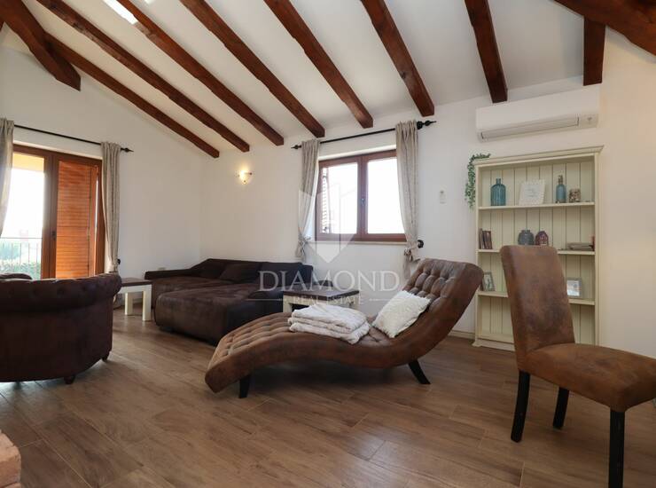Na katu su smještene još dvije spavaće sobe koje dijele zajedničku kupaonicu. Posebnu vrijednost ovom dijelu kuće daje velika terasa s koje se pruža otvoren pogled na more i okolni krajolik – savršeno mjesto za uživanje u zalascima sunca.