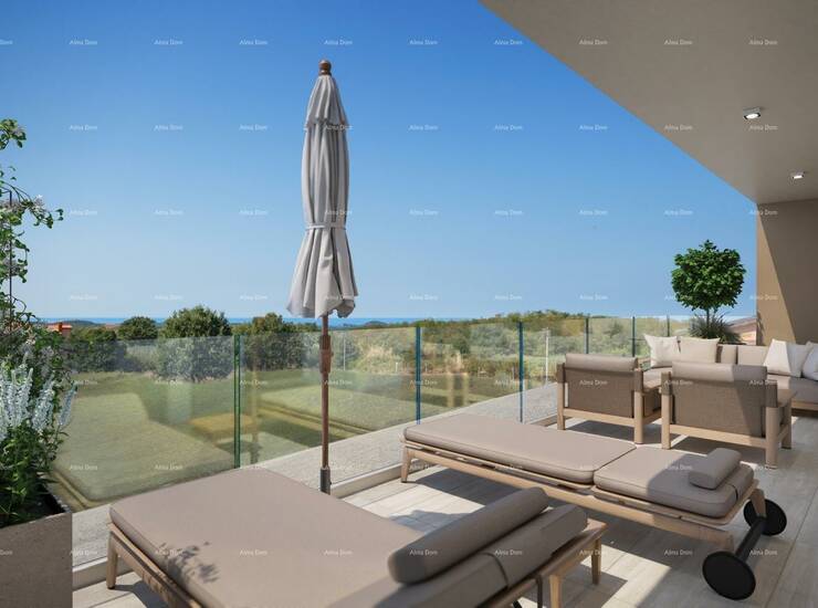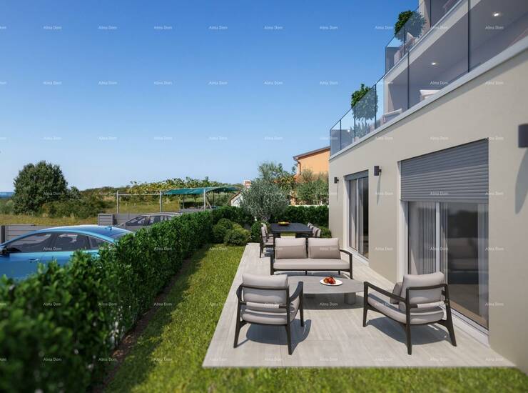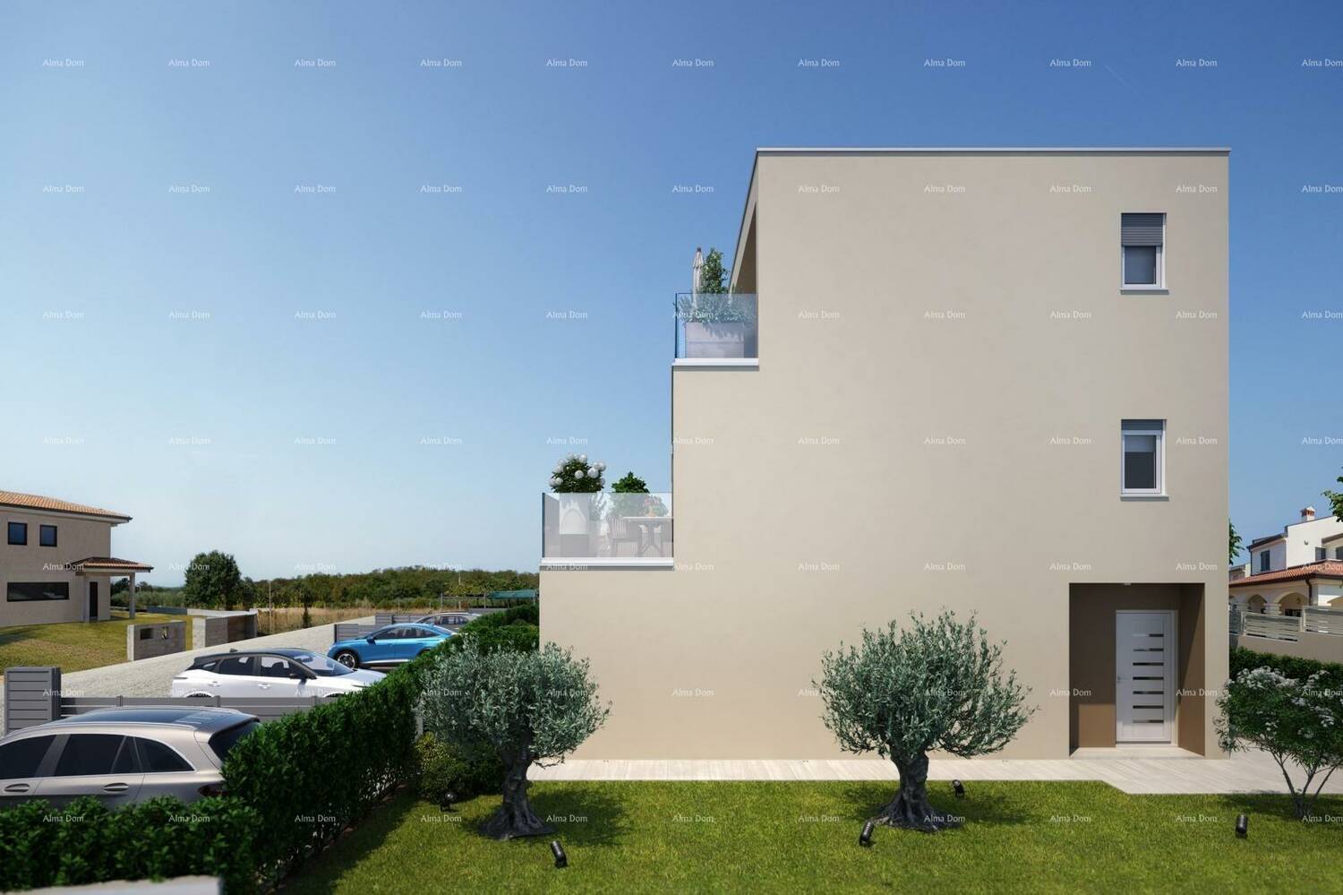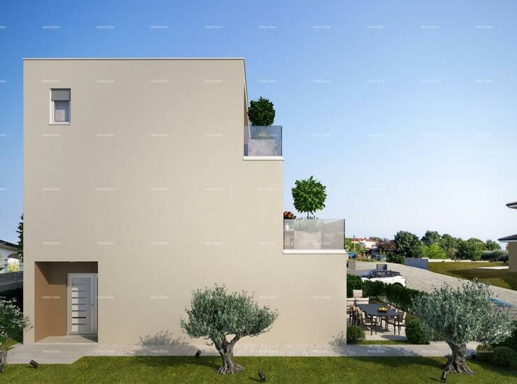 Na prodaju je moderna novogradnja u naselju Žbandaj, svega nekoliko minuta vožnje od Poreča. Smještena u mirnom i zelenilom okruženom dijelu naselja, ova nekretnina pruža potpunu privatnost, prekrasan pogled na more i funkcionalan raspored, idealan za obiteljski život, više generacija ili turistički najam.