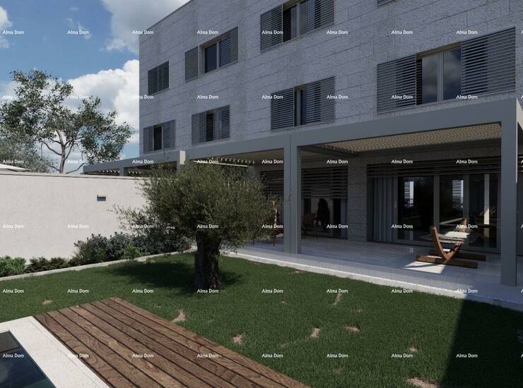 Trenutno u roh-bau fazi, površina od približno 600–650 m² te je projektirana kao stambeni objekt s 5 stanova i dva bazena.