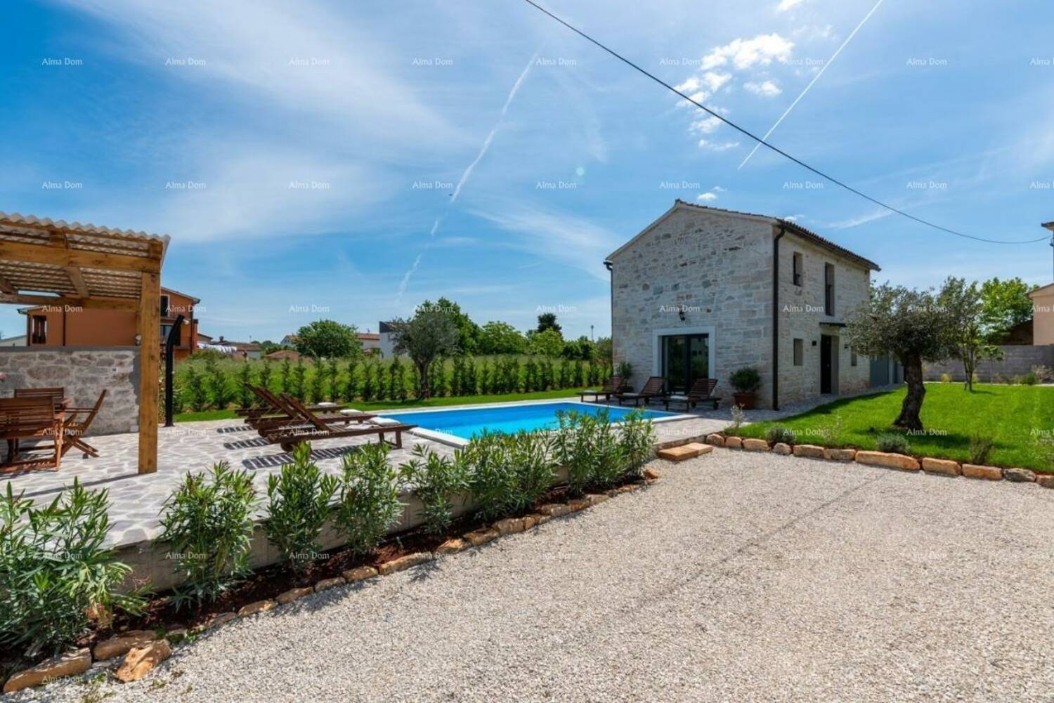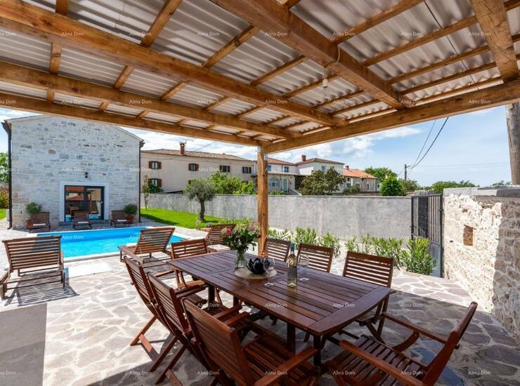 Prelijepa kuća u istarskom stilu, s privatnim bazenom, nalazi se na lijepoj i mirnoj lokaciji.