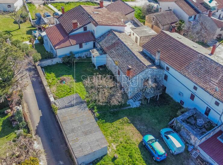 Ova autohtona istarska kuća u nizu se proteže kroz prizemlje i kat, a površina kuće iznosi 220 m2. Kuća zahtijeva adaptaciju, no sama kuća ima čvrste, fugirane kamene zidove debljine 60 cm, te se s obzirom na to zaista radi o kući koja predstavlja jednu dobru bazu koja ima potencijala. Interijer kuće se može urediti ovisno o želji novog vlasnika. Kuća ima dimnjak. Kuća je izgrađena prije 1968. godine, svi su priključci dostupni, a tik do same parcele se nalazi i kanalizacijski sustav.