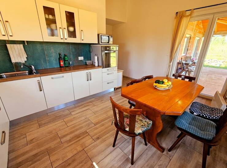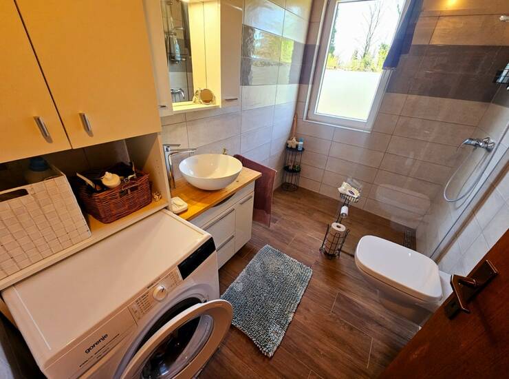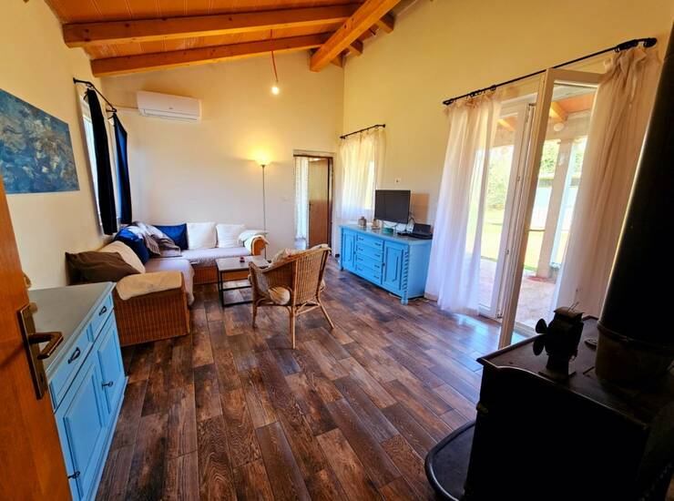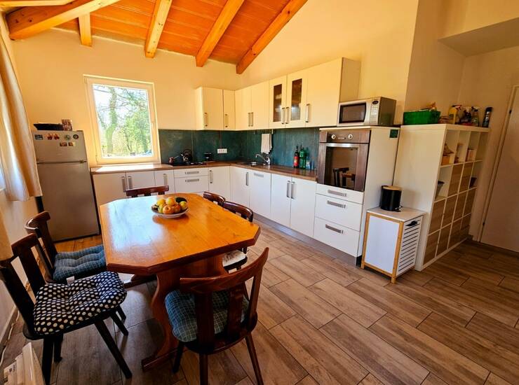 Prodaje se prizemnica na izrazito mirnoj lokaciji u okolici Poreča, udaljena od mora i od grada cca 10 km. Kuća nema direktnih susjeda, u mjestu se nalaze još 4 privatne kuće za odmor, a osim toga kuća je okružena prirodom, vinogradima i maslinicima. Sastoji se od ulaznog hodnika, kuhinje s blagovaonom, zasebnog dnevnog boravka, dvije spavaće sobe, jedne radne sobe te dvije kupaonice, jedna veća i jedna manja. U radnu sobu ulazi se kroz dnevni boravak, a pristup natkrivenoj terasi postoji iz kuhinje, boravka i radne sobe. Dodatno, jedna spavaća soba ima balkonska vrata za pristup vrtu iza kuće. Za grijanje postoji velika peć na drva u dnevnom boravku te klima uređaj za grijanje i hlađenje. Na prostranoj okućnici nalazi se vrtna kućica od 18 m2 na kojoj je postavljen solarni sustav od 5 kW. Okućnica je većim dijelom ograđena, dio ograde je kameni suhozid. U vrtu su posađene razne vrste mediteranskog bilja (kadulja, ružmarin, lavanda, smokve…) Kuća se treba dovršiti, ali je useljiva s aktivnim priključcima vode i struje te ima septičku jamu. Papiri su uredni s pravomoćnom građevinskom dozvolom. Kuća nudi maksimalnu privatnost, sa ceste nije vidljiva te se nalazi na rubu građevinskog područja uz šumu.