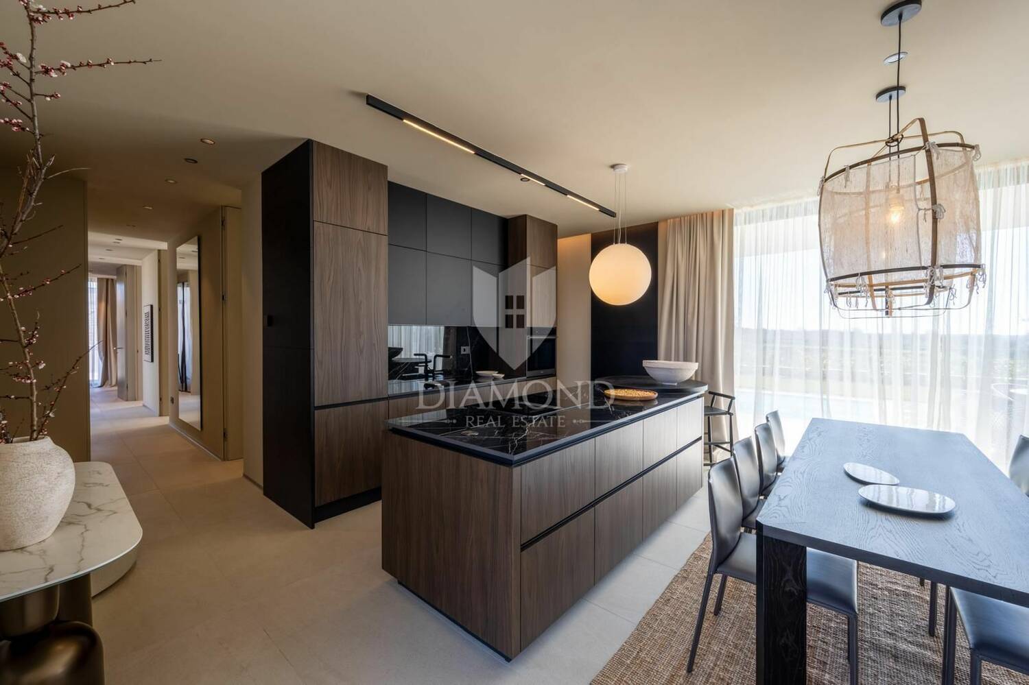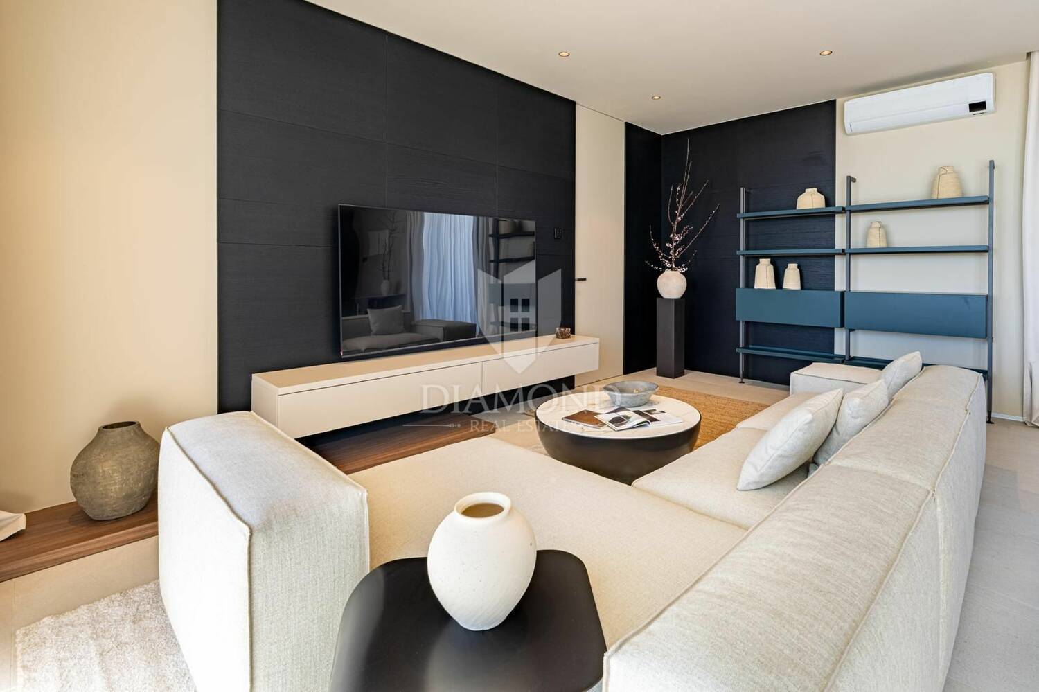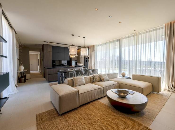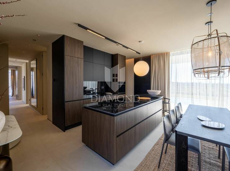 Interijer je u potpunosti opremljen dizajnerskim namještajem renomiranih brendova, dok troslojna stakla, aluminijska stolarija, spušteni stropovi i podne obloge od kvalitetne keramike naglašavaju razinu izvedbe.