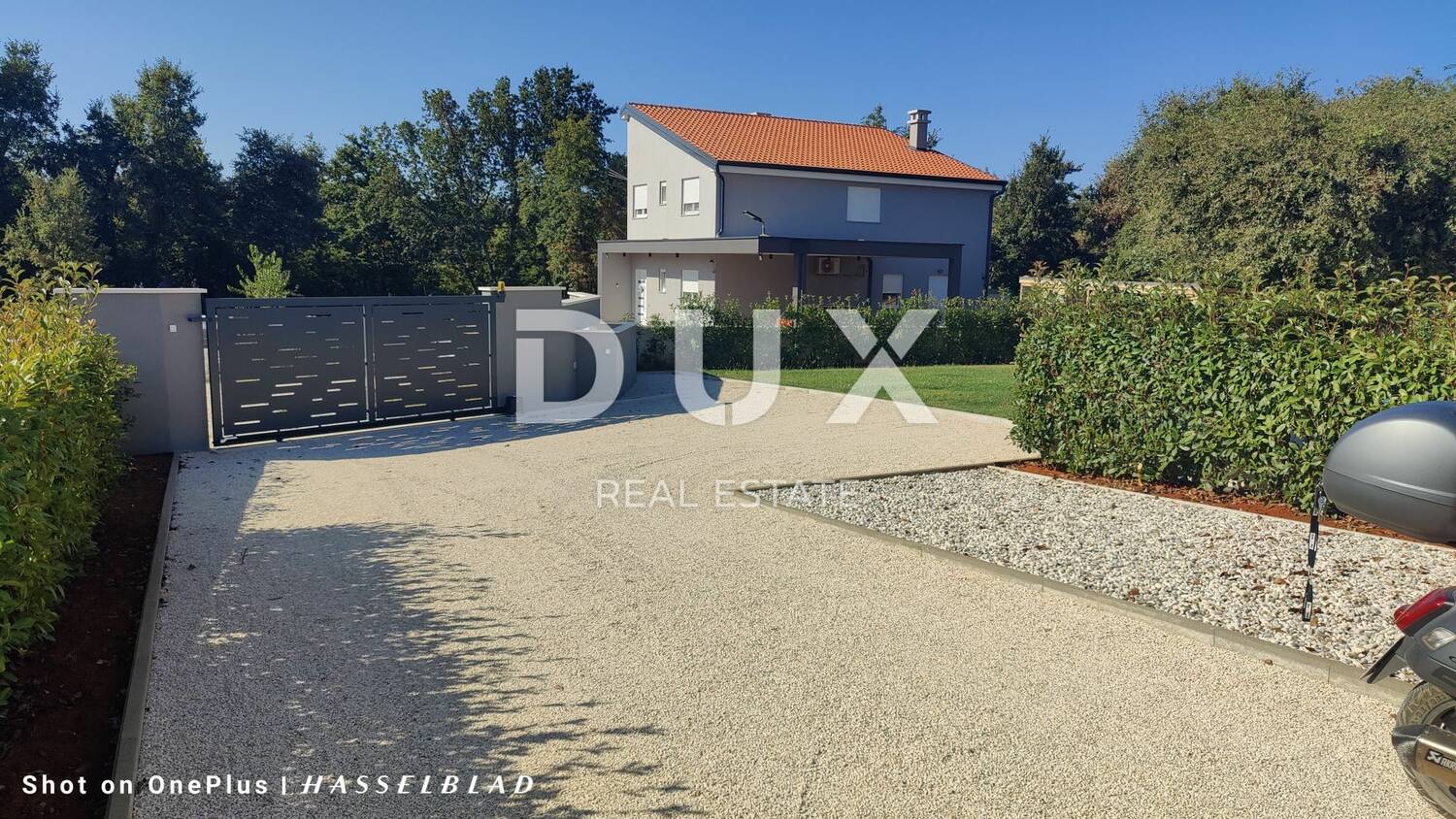 Na svega nekoliko minuta vožnje od Poreča, u mirnoj ulici okruženoj zelenilom i autohtonom istarskom prirodom, smjestila se ova samostojeća moderna vila – savršena kombinacija privatnosti, udobnosti i potencijala za život ili turističku investiciju.