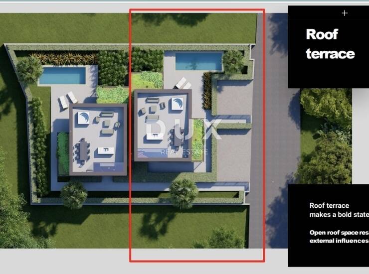U mirnom okruženju nadomak centra Poreča, svega 1.800 m udaljena od uređenih plaža, smještena je moderna dvojna vila vrhunske kvalitete, trenutno u fazi izgradnje.