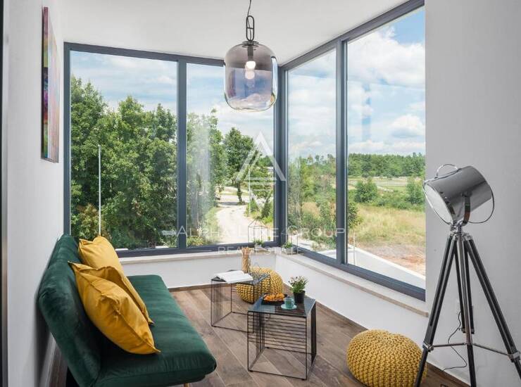 Smještena u mirnom susjedstvu na rubu Rovinja, ova suvremeno izgrađena vila nudi profinjen spoj moderne arhitekture, udobnosti i prirodnog okruženja. Dizajnirana s čistim linijama i visokokvalitetnim materijalima, nekretnina pruža elegantno životno iskustvo uz savršenu harmoniju s mediteranskim krajolikom. Kuća je raspoređena na dvije etaže i nudi prostrane interijere idealne za cjelogodišnje stanovanje ili luksuzno turističko ulaganje.