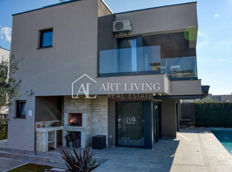 Prodaje se ekskluzivna, moderno uređena vila površine 250 m², smještena na izuzetnoj lokaciji — samo 500 metara od prvih predivnih plaža i 1,4 km od centra Poreča. Vila se nalazi na uređenoj parceli od 393 m² i predstavlja savršenu kombinaciju elegantnog dizajna, udobnosti i vrhunske funkcionalnosti.