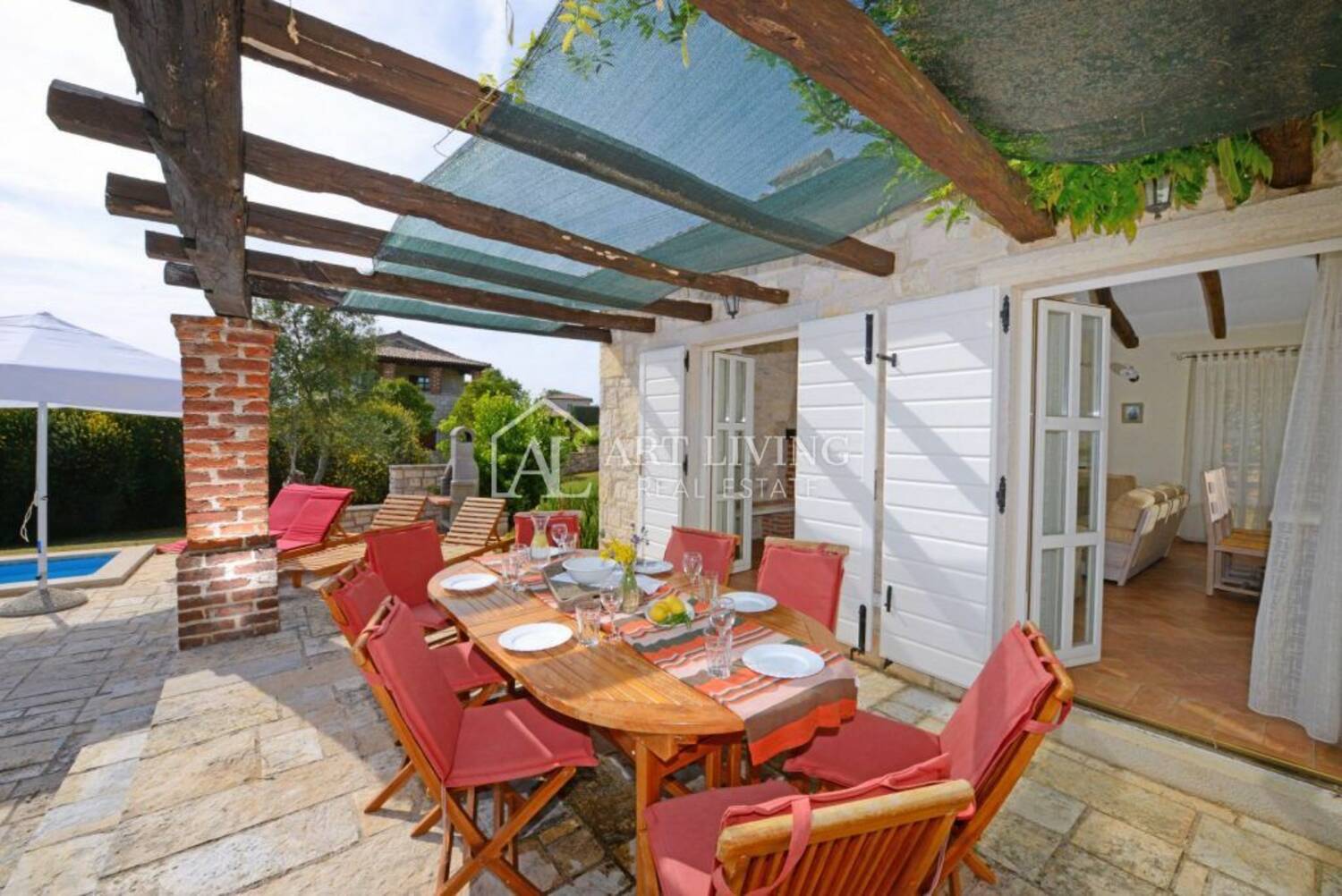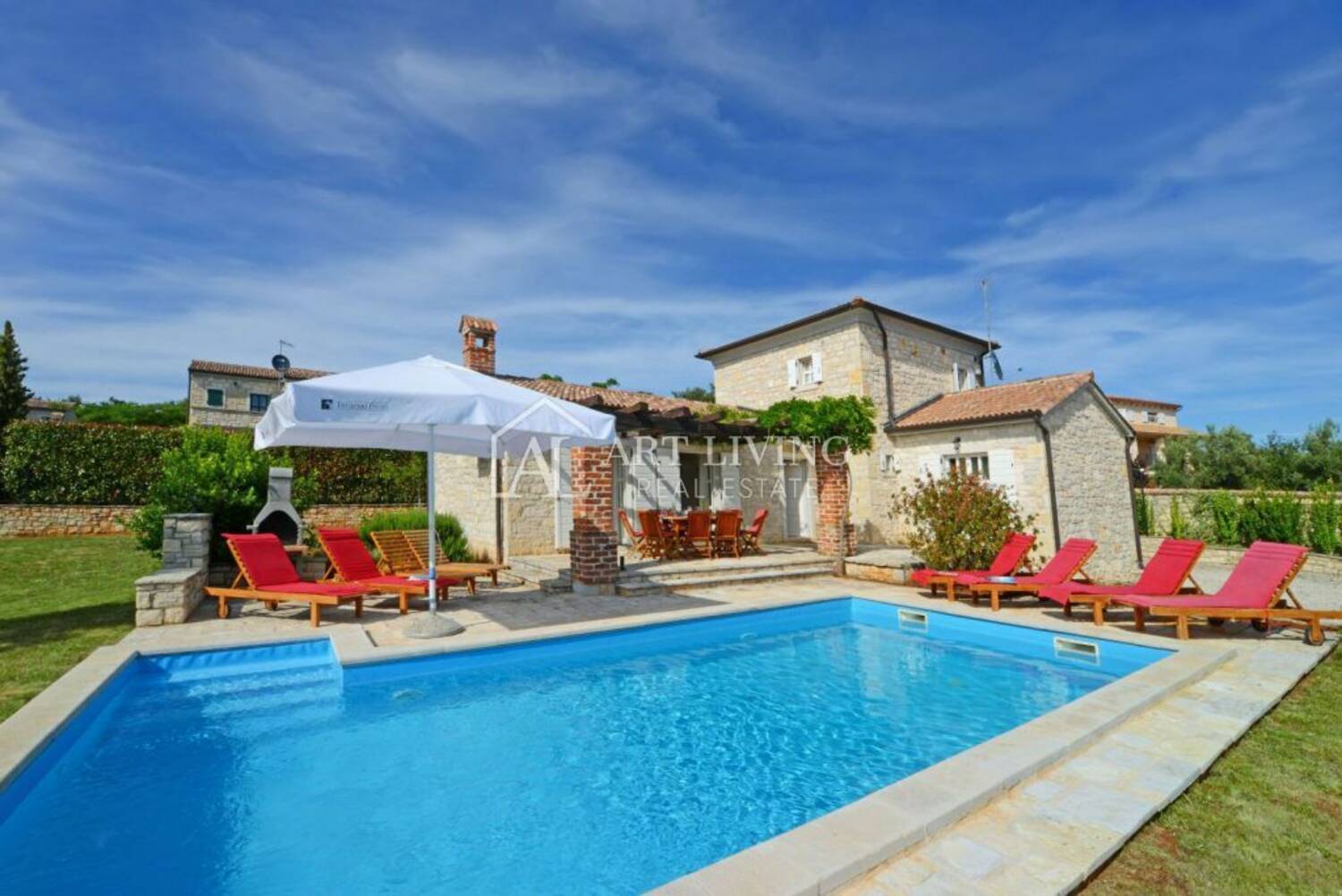 Villa je osmišljena u istarskom rustikalnom stilu te predstavlja savršen spoj autohtonog dizajna i bezvremenske klasike.