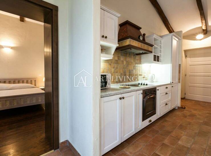 Prodaje se šarmantna kamena villa u istarskom stilu s bazenom, smještena 16 km od grada Poreča i od mora u idiličnom krajoliku istarskog krajolika u kompleksu od 10 villa.