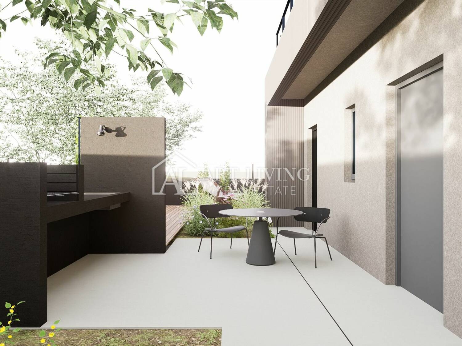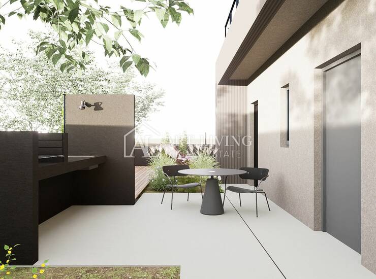 Kuća se nalazi na parceli od 510 m² te je trenutno u završnoj fazi gradnje. Uređeni vanjski prostor pruža dovoljno mjesta za boravak na otvorenom, sunčanje i druženje