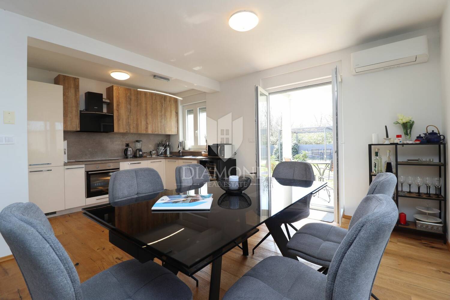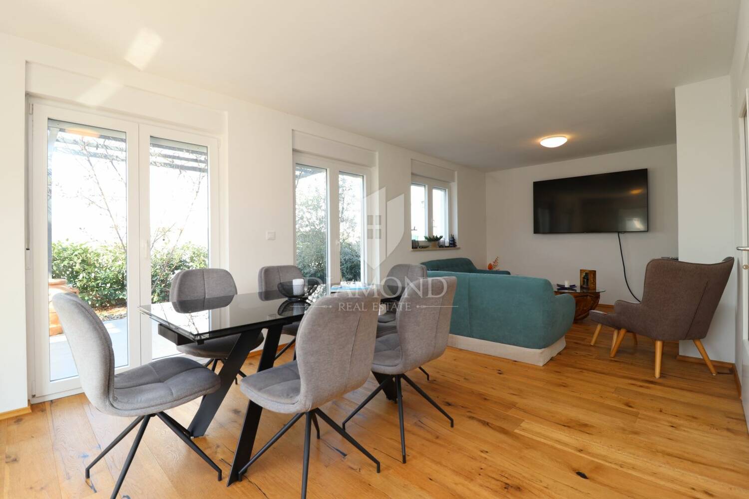 U mirnom dijelu okolice Poreča, nekoliko minuta vožnje od grada i mora, nalazi se ova kuća u nizu. Smještena kao zadnja u nizu, uz otvoreno poljoprivredno zemljište, pruža neometan pogled i mir bez neposredne izgradnje.