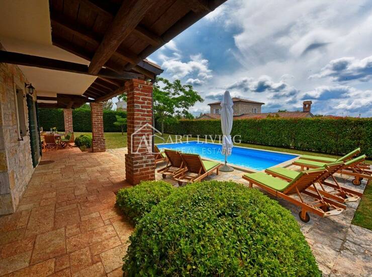 Villa je osmišljena u istarskom rustikalnom stilu te predstavlja savršen spoj autohtonog dizajna i bezvremenske klasike.