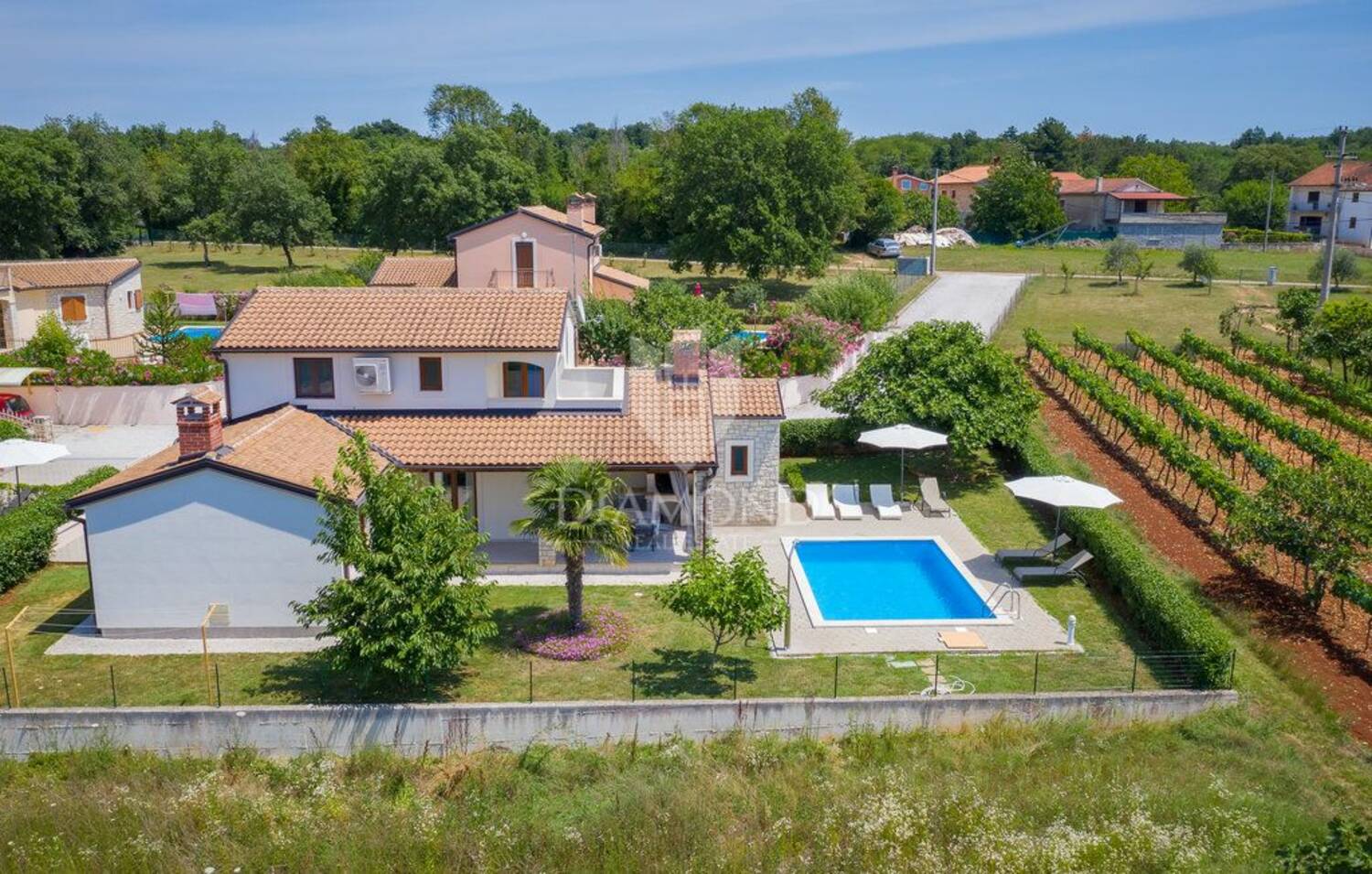 U mirnom i sunčanom dijelu okolice Poreča, gdje prevladavaju obiteljske kuće i zelenilo, smjestila se ova nekretnina koja pruža osjećaj opuštenog mediteranskog života. Lokacija nudi ono što se sve češće traži – mir, privatnost i prostor, uz dobru povezanost i blizinu svih potrebnih sadržaja.