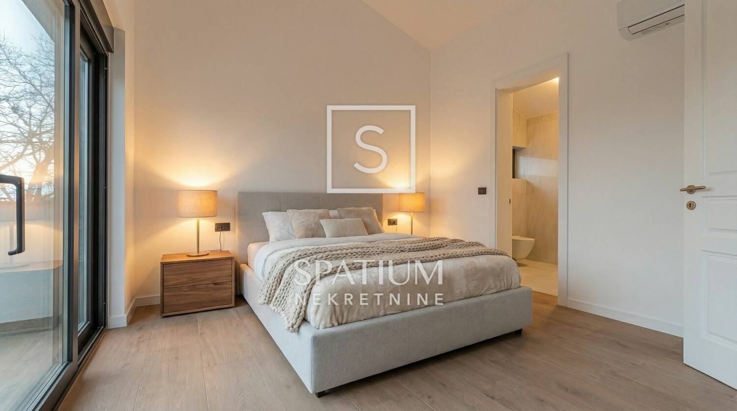 • Na ulaznom hall-u i dnevnom boravku postavljen je izuzetno kvalitetni talijanski mramor, dok su sobe opremljene prvorazrednim pločicama u izvedbi imitacije drva.
