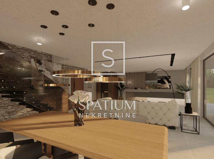 Kuća se nalazi u novom rezidencijalnom dijelu, okružena modernim luksuznim vilama, što jamči ekskluzivnost i kvalitetan ambijent. Projektirana je s naglaskom na suvremeni dizajn i maksimalnu udobnost te raspolaže s ukupno 210 m² stambene površine raspoređenih na dvije etaže.