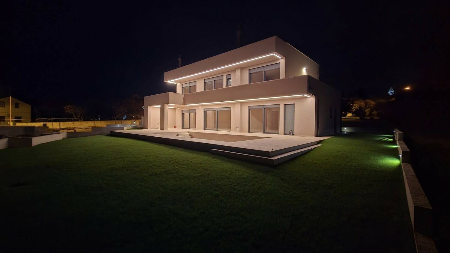 POREČ, OKOLICA – prodajemo kvalitetnu modernu vilu s bazenom udaljenu cca 14 km od Poreča i mora, ukupne bruto površine 251 m2- Vila se sastoji od prizemlja, kata i krovne terase. Prizemlje: hodnik, prostrani dnevni boravak sa kuhinjom blagovaonicom sa izlazom na terasu gdje se nalazi ljetna kuhinja, jedna spavaća soba sa kupaonicom, wc, ostava, tehnička soba i strojarnica- kat: 3 spavaće sobe, 3 kupaonice i prostrana terasa sa pogledom na more- krovna terasa: sa krovne terase proteže se prekrasan pogled na more gdje možete uživati u u jacuzziju i sauni. Grijanje/hlađenje: podno grijanje i topla voda putem dizalice topline Daikin- klimatizacija svih soba i dnevnog boravka putem klime Daikin- Bazen 46 m2: pločice, grijani bazen putem dizalice topline Zodiak- četiri parkirna mjesta- pvc stolarija, aluminijske klizne stijene- komarnici- nadzorne kamere- SAT- alarm- uređeni okoliš. Parcela 821 m2- S obzirom na lokaciju nekretnine i sadržaje koje mjesto nudi, idealna je za život kao i za turistički najam. Završetak svih radova biti će u proljeće 2025.
