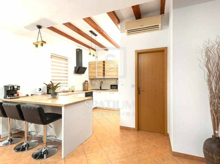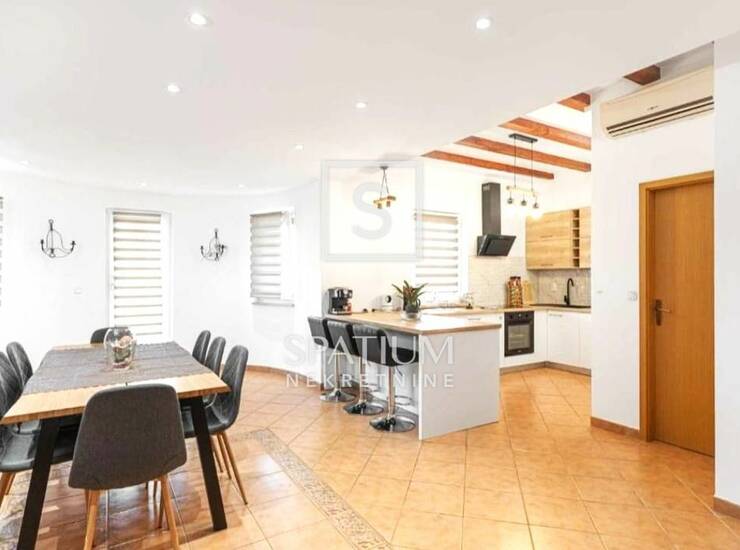U dvorištu se nalazi grijani bazen s plićim dijelom za djecu, natkrivena ljetna kuhinja s roštiljem te privatni prostor za parkiranje. Nekretnina je pogodna za obiteljsko stanovanje, ali i za turistički najam, zahvaljujući atraktivnoj lokaciji i dobro održavanom prostoru.