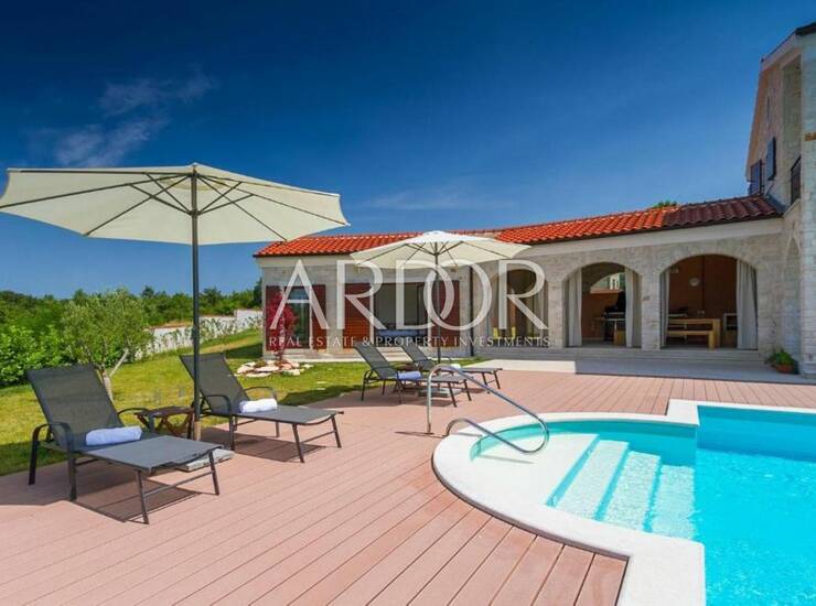 Prekrasna kamena vila uređena je u suvremenom stilu. 250 m2 stambenog prostora i prostrana okućnica od 1400 m2 je razlog zašto je ova nekretnina lijepa prilika.