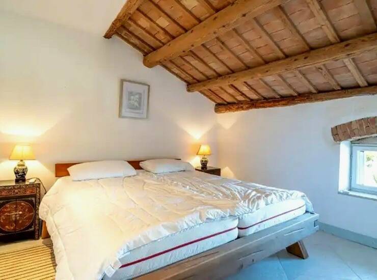 Nekretnina se prostire na tri etaže i nudi ukupno četiri spavaće sobe i tri kupaonice. Prizemlje: kuhinja, dnevni boravak s blagovaonicom, gostinjski WC te konoba/ostava (mogućnost dodatnog multifunkcionalnog prostora). Prvi kat: dvije prostrane spavaće sobe s ugradbenim ormarima, svaka s vlastitom kupaonicom. Drugi kat: dvije dodatne spavaće sobe i još jedna kupaonica. Kuća je opremljena peći na drva za grijanje te klima uređajima za hlađenje i održavanje ugodne temperature tijekom cijele godine. U ograđenom dvorištu nalazi se ljetna kuhinja s kaminom, natkriveni prostor za objedovanje na otvorenom, parkirno mjesto te prostor za skladištenje drva.