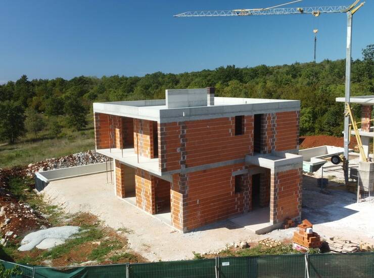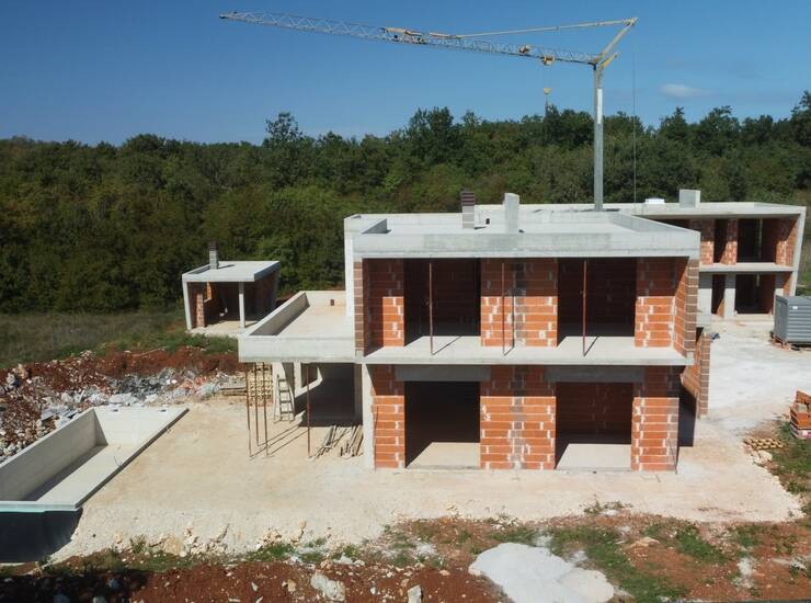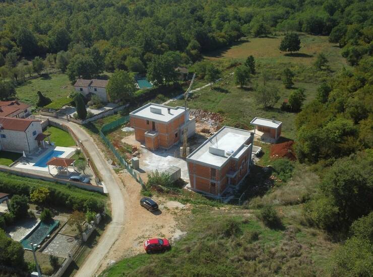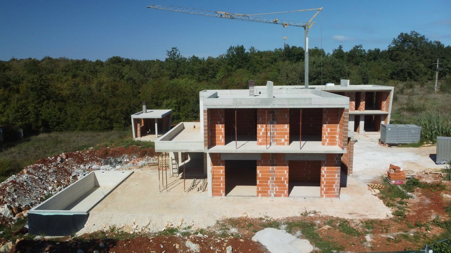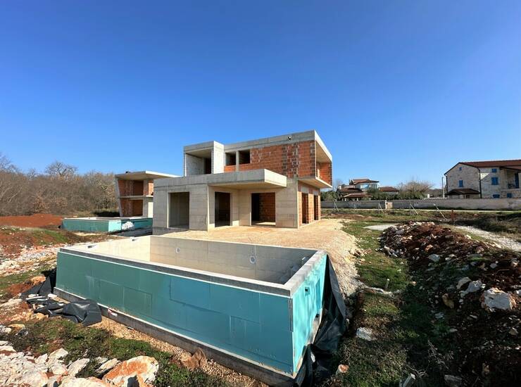 Atraktivna Vila u izgradnji s bazenom i većom okućnicom , modernog dizajna, na mirnoj lokaciji 10 minuta vožnje do mora i centra grada Poreč. Vila se gradi na zemljištu od 914m2. Unutar ograđenog dvorišta vila će raspolagati bazenom veličine 30,84m2 te ljetne kuhinje od 9,86m2. Ova moderna vila nudi Neto stambenu površinu od 229,82m2 , koncipirana je kroz dvije etaže: prizemlje i kat. Glavni ulaz je na južnom pročelju gdje se preko natkrivenog prolaza ulazi u hodnik koji povezuje spavaću sobu s pratećom kupaonicom, gostinjski wc, te vodi u otvoreni prostor koji se sastoji od kuhinje blagovaonice i prostranog dnevnog boravka. Iz blagovaonice/dnevnog boravka je moguć izlaz na djelomično natkrivenu terasu. Unutarnjim stubištem pristupa se prostorijama smještenim na prvom katu, tri spavaće sobe s pripadajućim kupaonicama i balkonima koji nude pogled na zeleni okoliš .