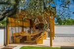 U prizemlju, prekrasna terasa s izlazom na bazen od 32 četvorna metra vodi izravno iz otvorenog dnevnog boravka, kuhinje i blagovaonice. Vanjski jacuzzi, biljar, pikado, stolni nogomet, a kao dodatni sadržaj ispred kuće dostupni su bicikli.