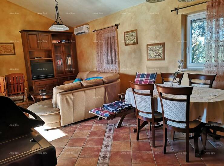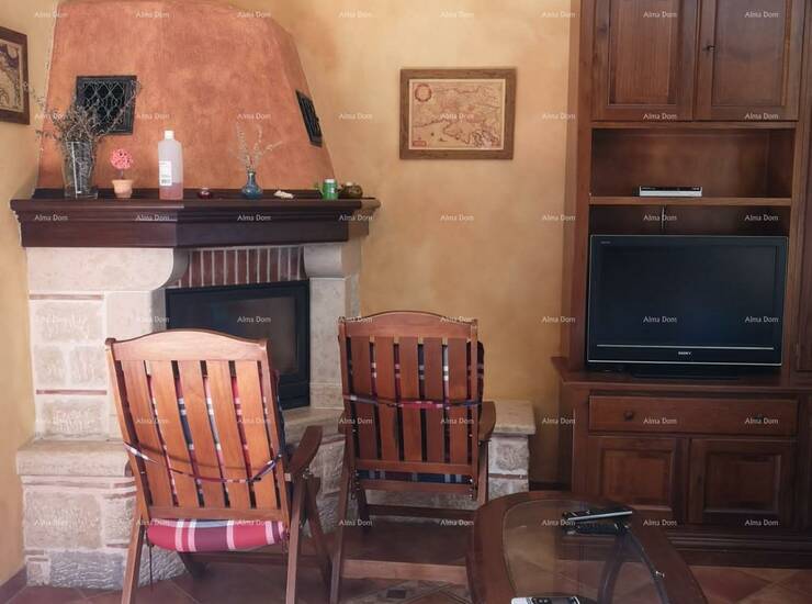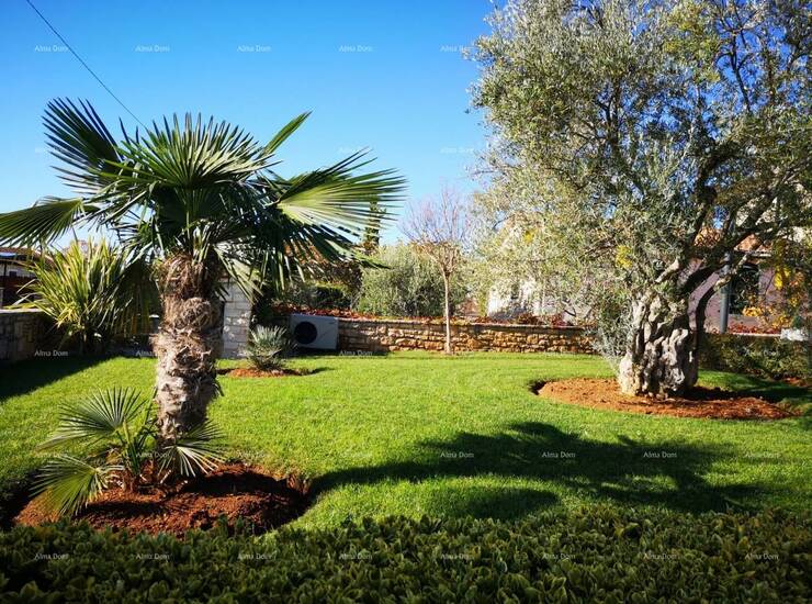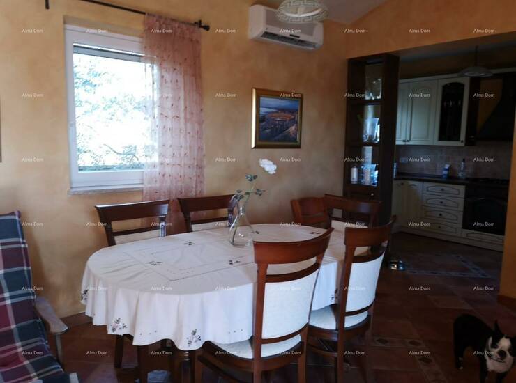 Prekrasna kuća s velikim bazenom od 35 m2. Kvadratura kuće je 168 m2, okućnica je 750 m2. Ima 2 parking mjesta. Kuća se sastoji od dnevnog boravka, kuhinje s blagovaonom, 4 spavaće sobe,3 kupaone. Ima kamin. Grijanje je na klimu i na peć. Udaljenost od mora 4,5 km, od Poreča i Novigrada je 10 km.