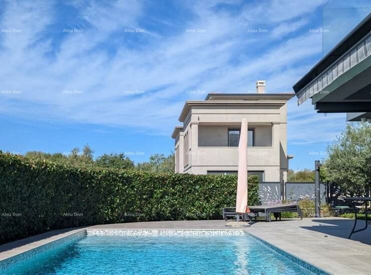 Vanjski prostor osmišljen je za potpuni užitak i opuštanje – bazen okružen terasom i sunčalištem, natkrivena terasa za objedovanje na otvorenom te roštilj.