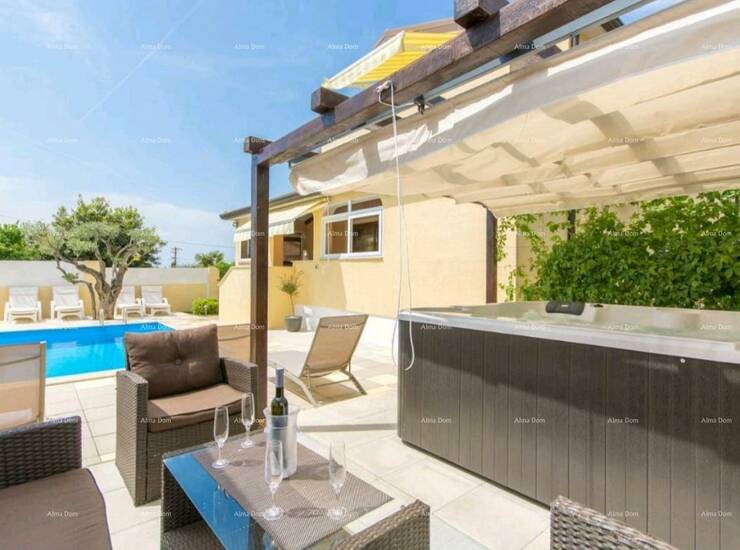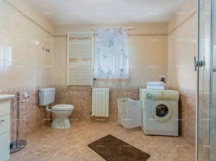 Veliki stan koji se sastoji od 3 spavaće sobe, 2 kupaonice, kuhinje s blagovaonicom i dnevnim boravkom, te natkrivene terase s izlazom na bazen i uređeno dvorište.