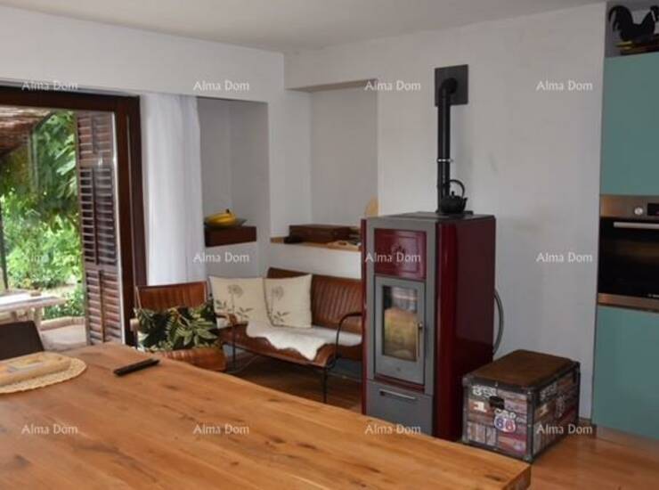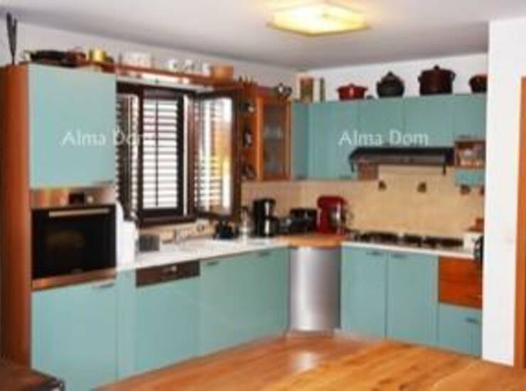 Odvojeni glavni ulaz vodi nas u hodnik te veliku kuhinju s blagavaonom koja ima izlaz na terasu i dvorište. U kuhinji se nalazi peć na pelete.