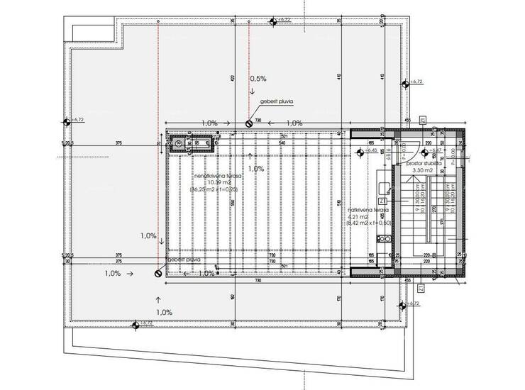 Na drugom katu nalazi se prostor stubišta, natkrivena i nenatkrivena terasa.