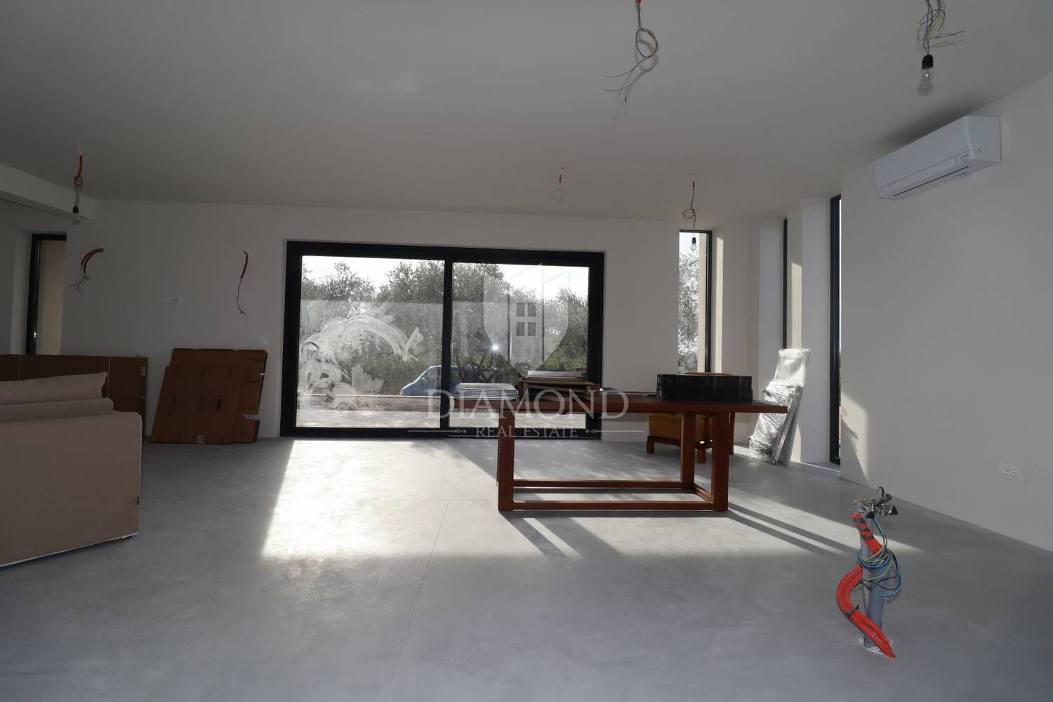 U interijeru dominiraju moderni i profinjeni detalji – podno grijanje osigurava ugodnu temperaturu u svim prostorijama, dok mikrocementni podovi i vrhunski završni radovi dodatno naglašavaju suvremeni karakter ove nekretnine.