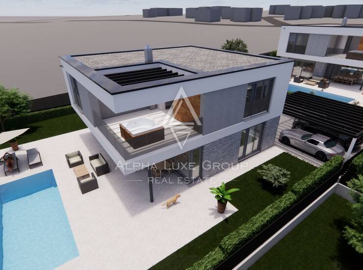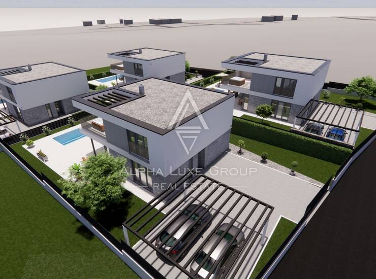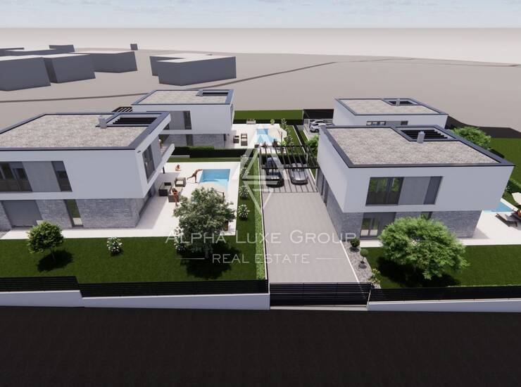 Svaka vila pažljivo je projektirana kako bi osigurala maksimalnu udobnost i funkcionalnost te raspolaže s četiri prostrane spavaće sobe, od kojih svaka ima vlastitu kupaonicu i walk-in garderobu, čime se postiže visoka razina privatnosti i komfora za sve korisnike prostora. Prizemlje je osmišljeno prema open-space konceptu koji povezuje dnevni boravak, blagovaonicu i kuhinju u svijetao i ugodan centralni prostor, idealan za svakodnevni život i druženja. U prizemlju se nalazi i gostinjski WC za dodatnu praktičnost.