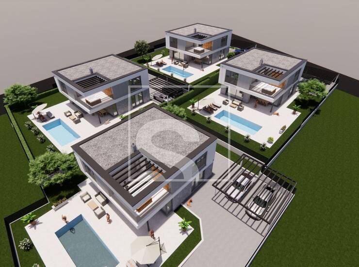 Na mirnoj i atraktivnoj lokaciji, na svega nekoliko km od centra Poreča, u prodaji imamo 4 moderne i luksuzne vile. Svaki objekt nalazi se na zasebnoj čestici te se prodaju zasebno.