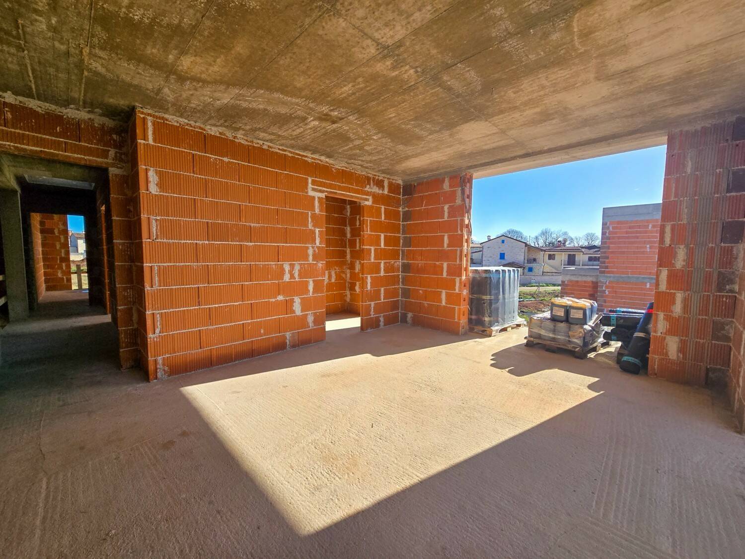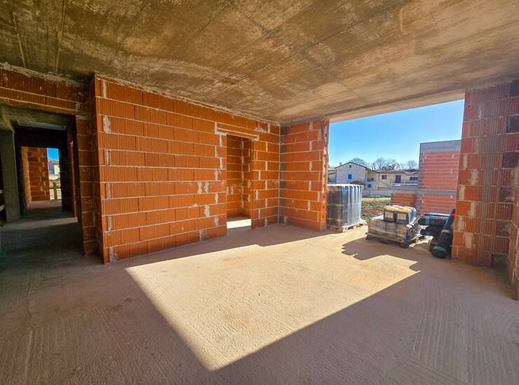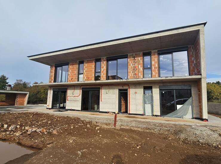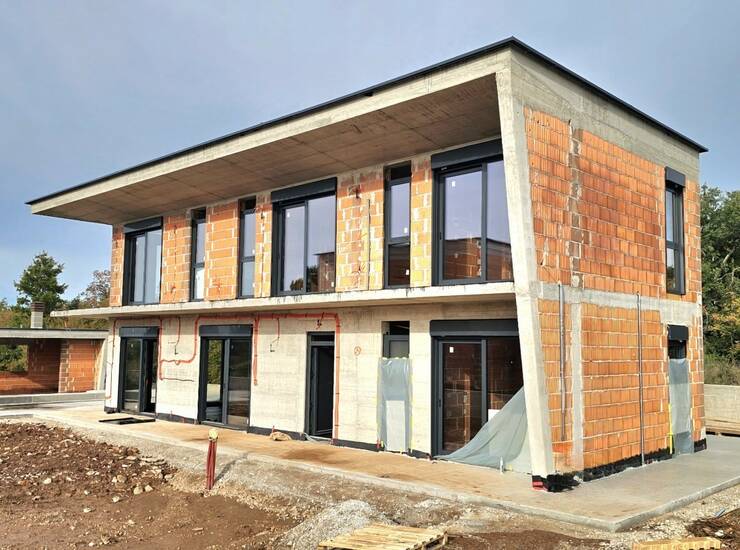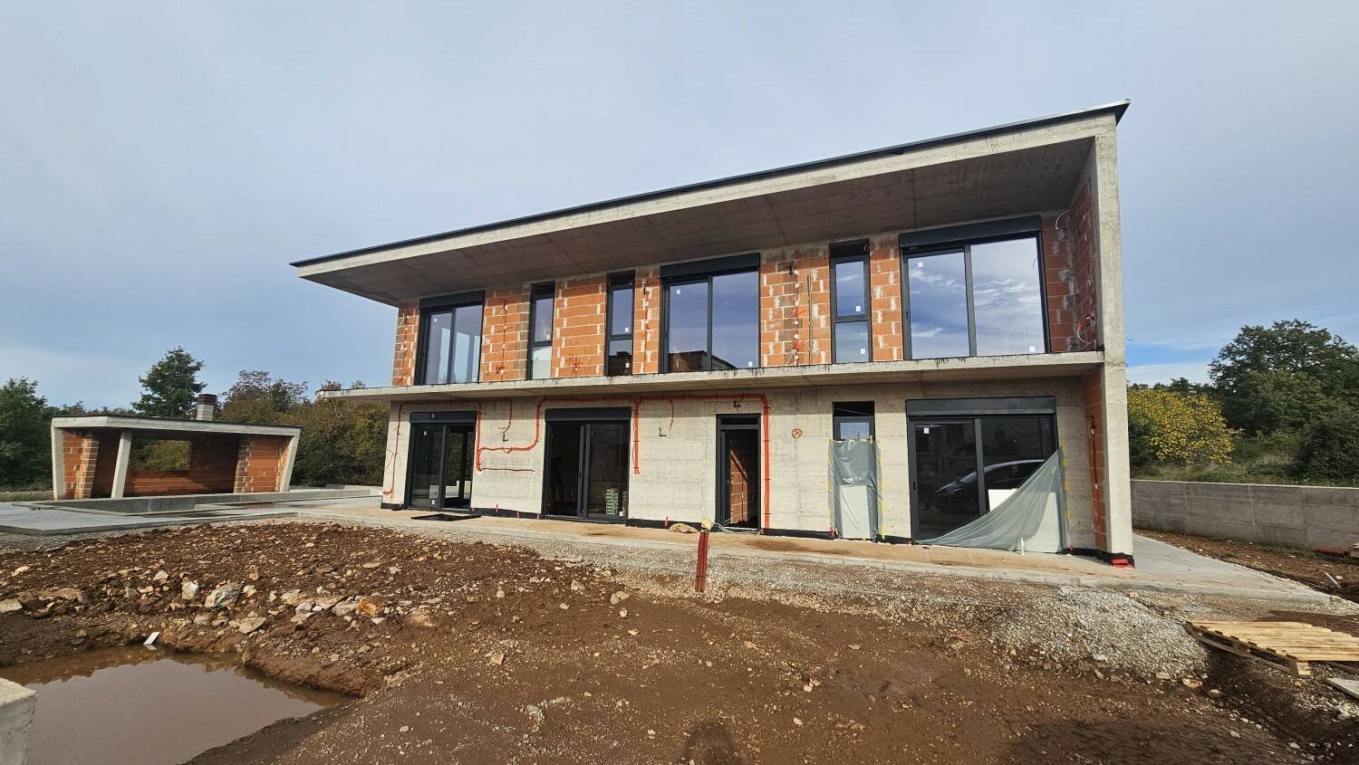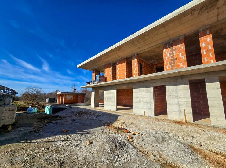 POREČ- Cca. 10 minuta vožnje udaljeno od mora i centra grada Poreč- vila modernog dizajna u izgradnji na zemljištu od 1080m2 - Unutar ograđenog dvorišta vila će raspolagati bazenom veličine 36,30m2 te ljetne kuhinje od 23,88m2 koja je u nastavku povezana sa vanjskim spremištem od 4,91m2. Ova moderna vila nudi Neto stambenu površinu od 179,61m2 , koncipirana je kroz dvije etaže: prizemlje i kat. Glavni ulaz je na sjevernom pročelju gdje se preko natkrivenog prolaza ulazi u hodnik koji povezuje spavaću sobu s pratećom kupaonicom, gostinjski wc, te vodi u otvoreni prostor koji se sastoji od kuhinje blagovaonice i prostranog dnevnog boravka. Iz blagovaonice/dnevnog boravka je moguć izlaz na djelomično natkrivenu terasu. Unutarnjim stubištem pristupa se prostorijama smještenim na prvom katu, tri spavaće sobe sa pripadajućim kupaonicama, a iz svake sobe je moguć izlazak na balkon koji nudi pogled na okoliš.