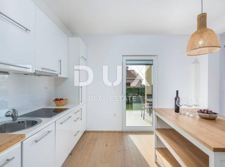 Tako se u prizemlju vila nalazi ulazni hodnik s predviđenim prostorom za garderobu, koji nas zatim vodi prema prostranom dnevnom boravku otvorenog koncepta, a koji je povezan s modernom i opremljenom kuhinjom i blagovaonicom dovoljnom za cijelu obitelj. Tu se krije i natkrivena terasa s pogledom na bazen i uređen vrt, idealna za jutarnju kavu ili večernje druženje, a kojoj se pristupa direktno iz dnevnoga prostora vile.